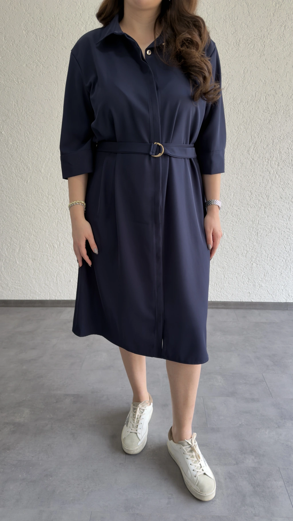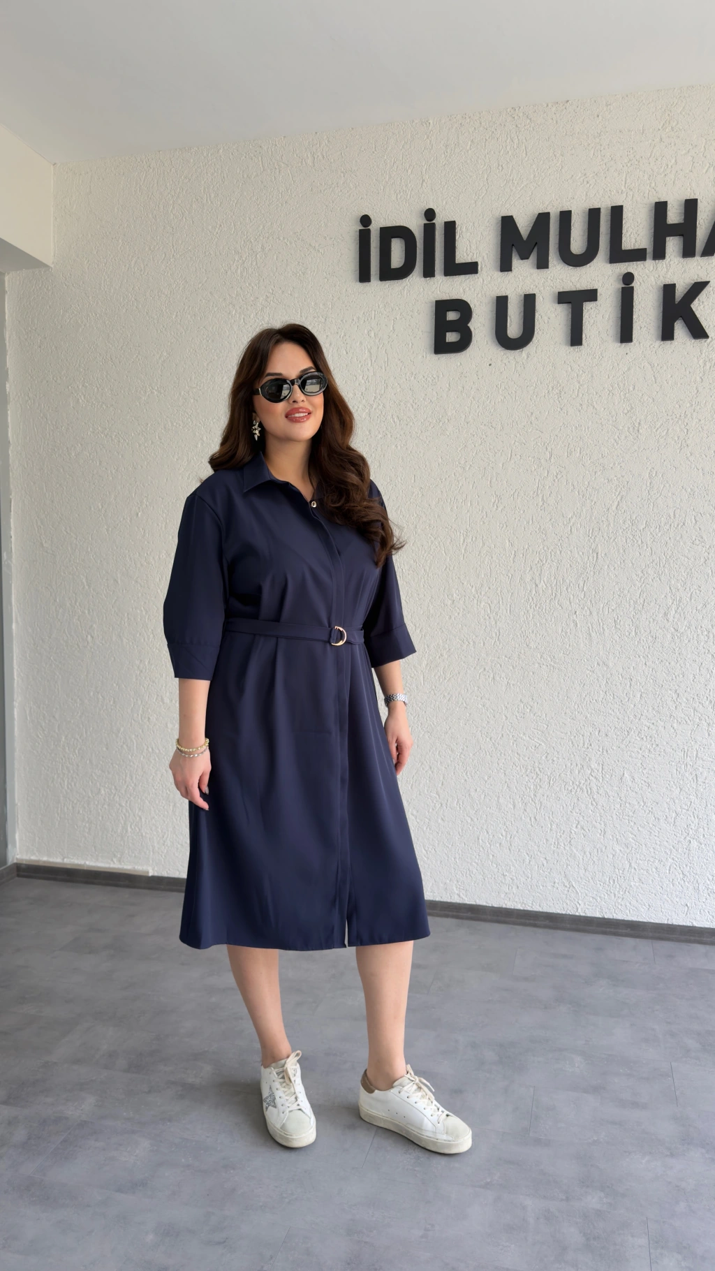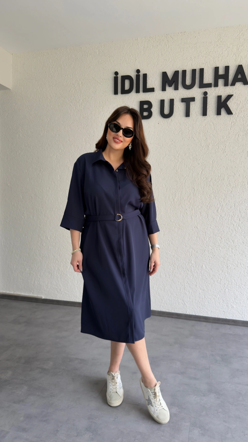 Lacivert Kuşaklı Premium Gömlek Elbise