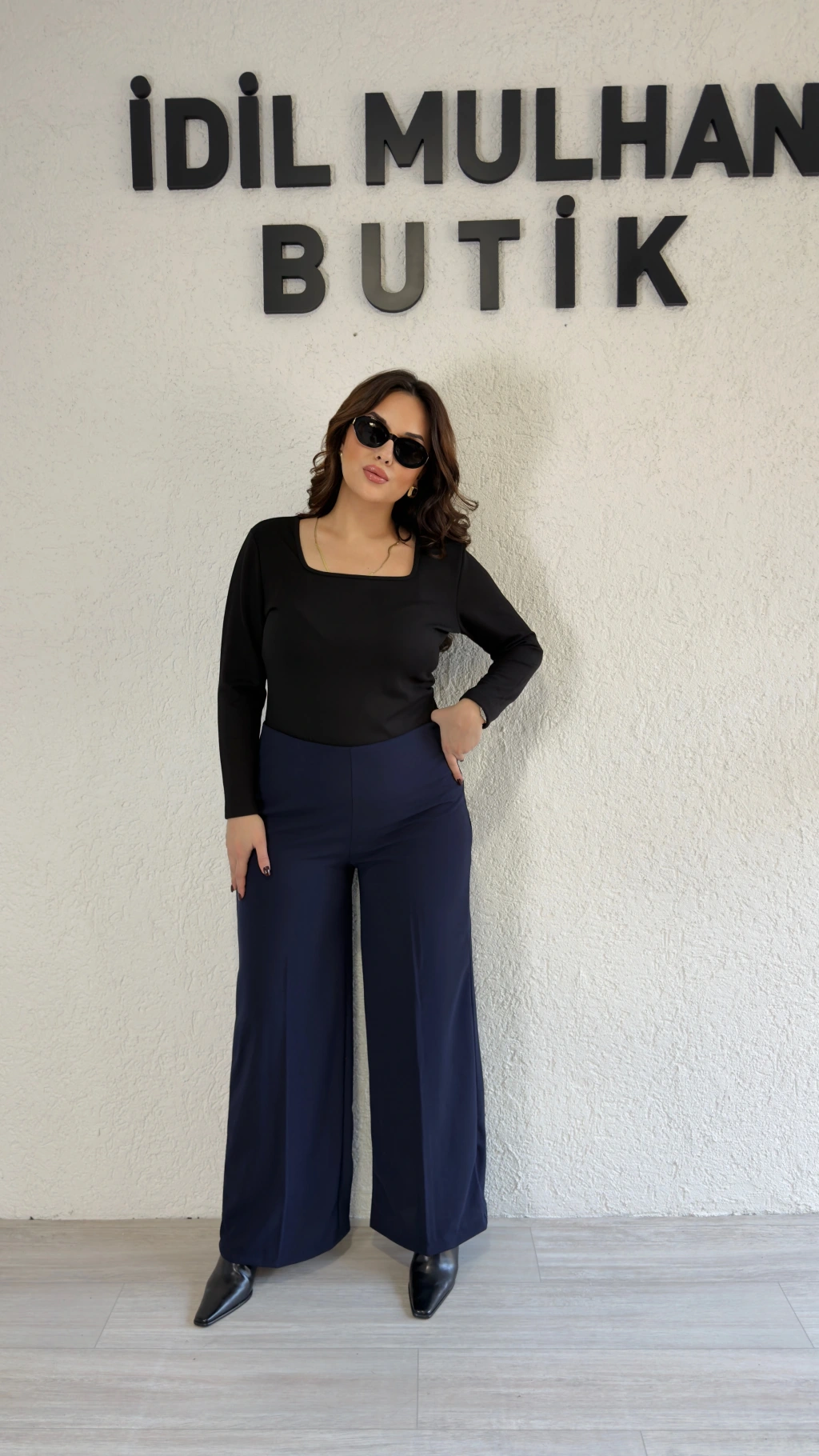 Lacivert Palazzo Pantolon