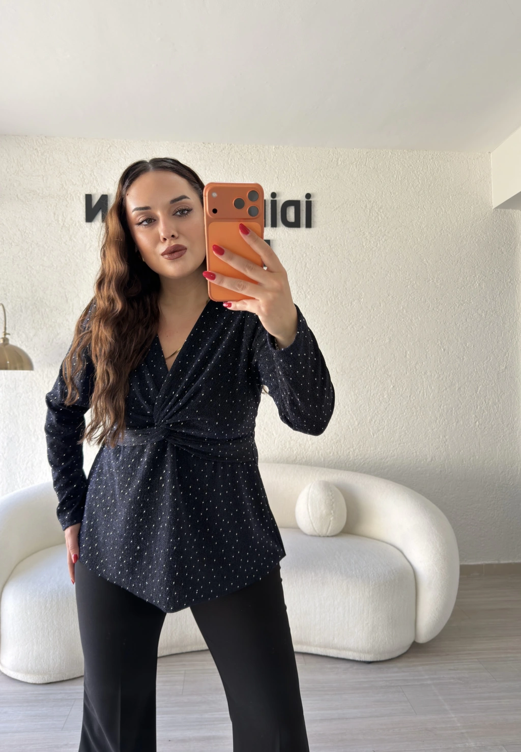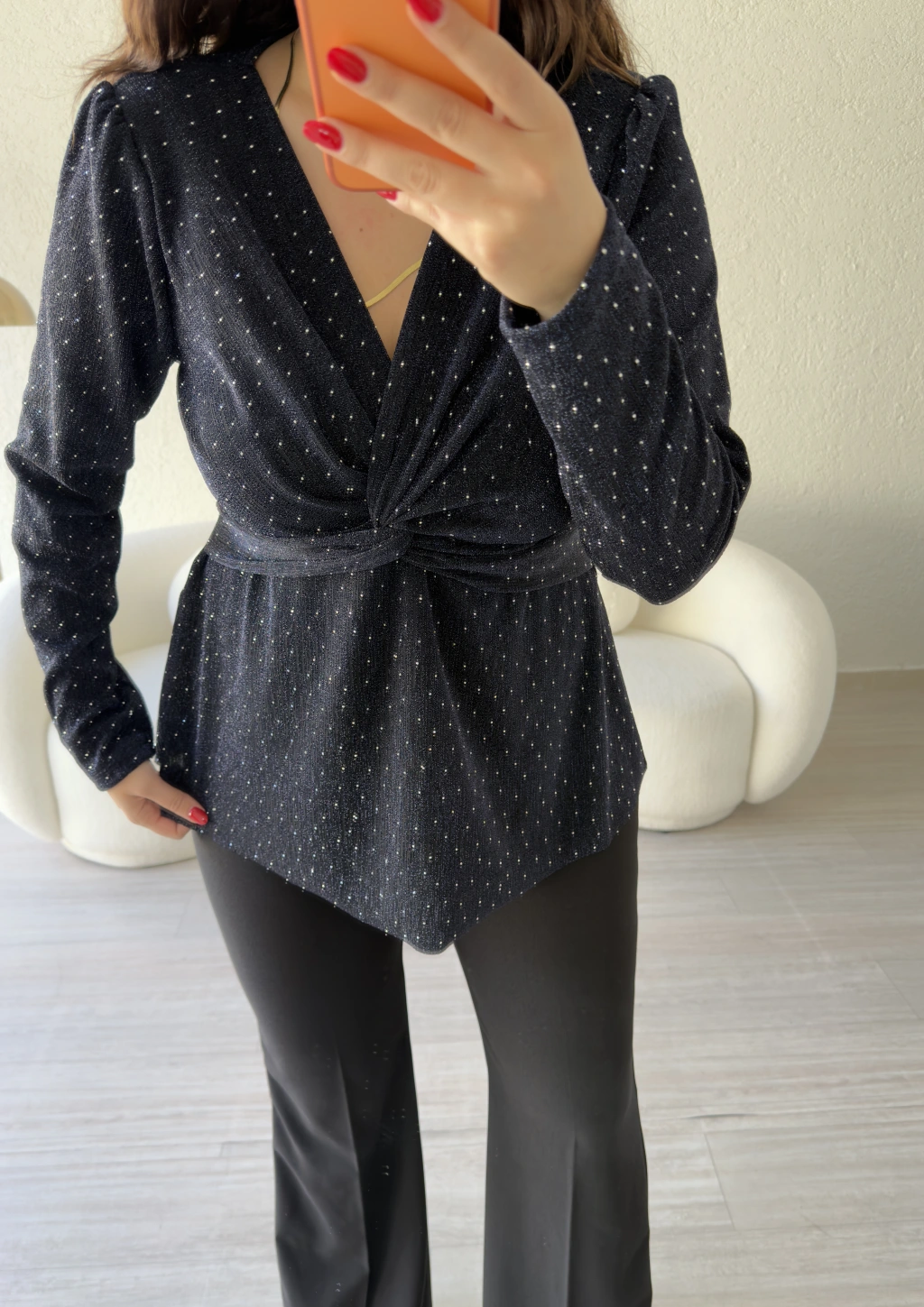 Siyah Işıltılı Kruvaze Bluz