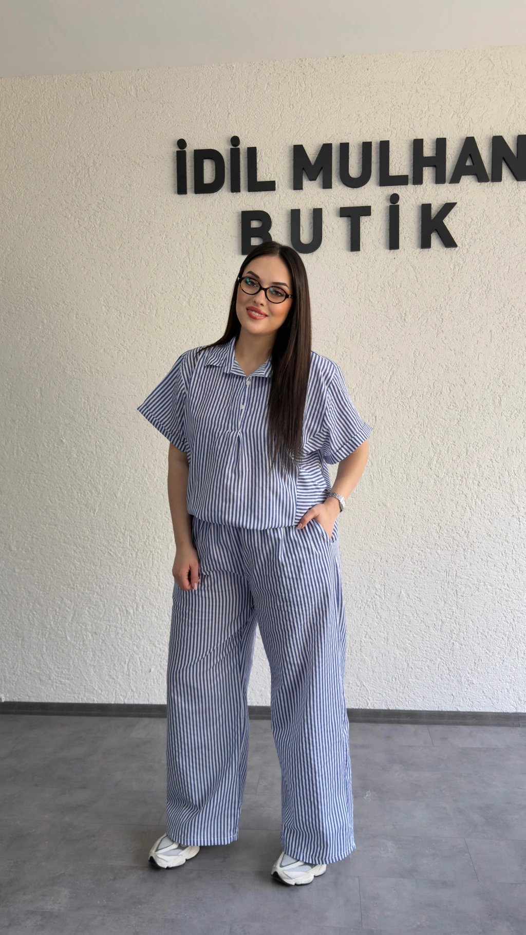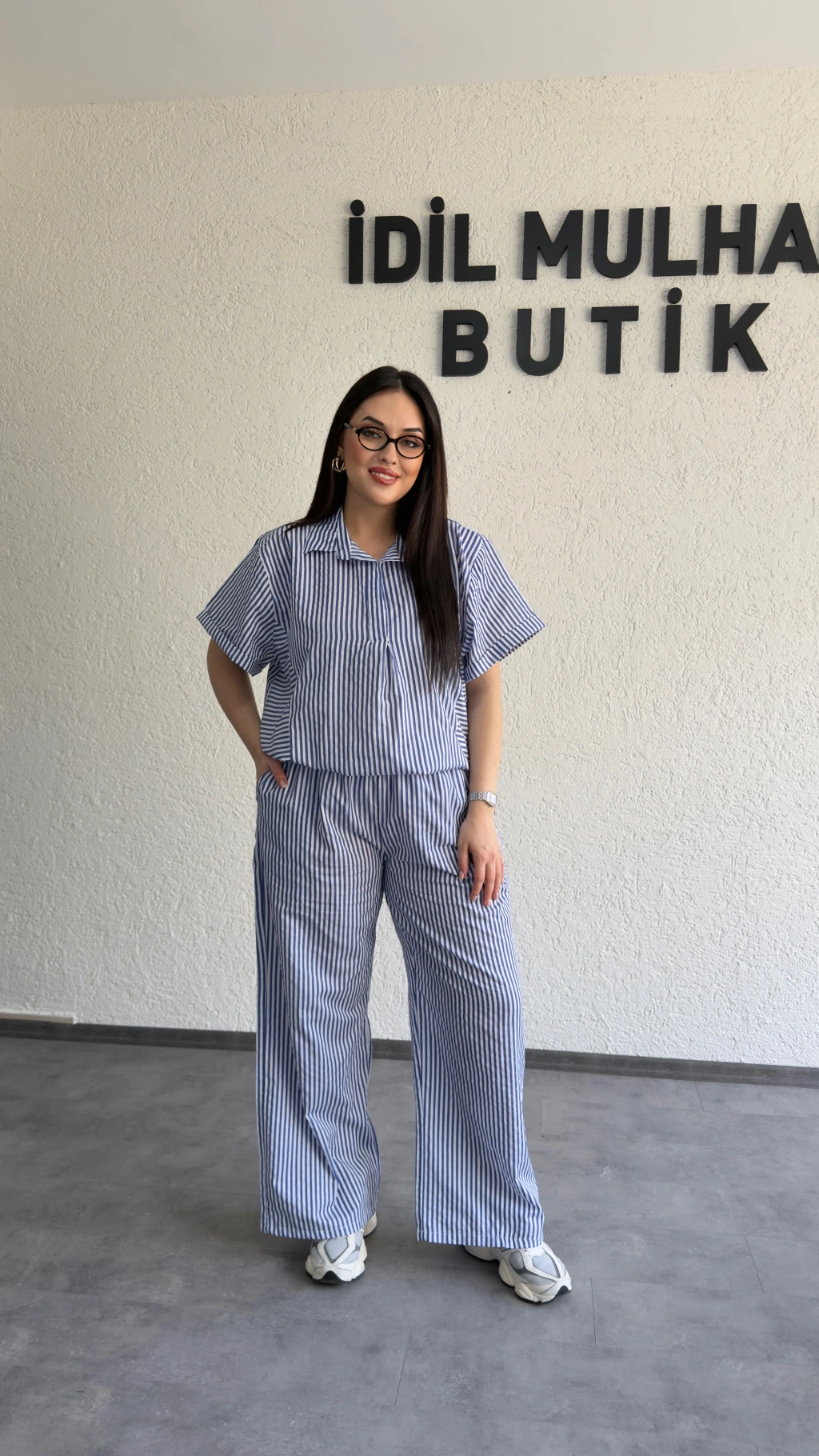 Mavi Çizgili Hafif Doku Günlük Takım