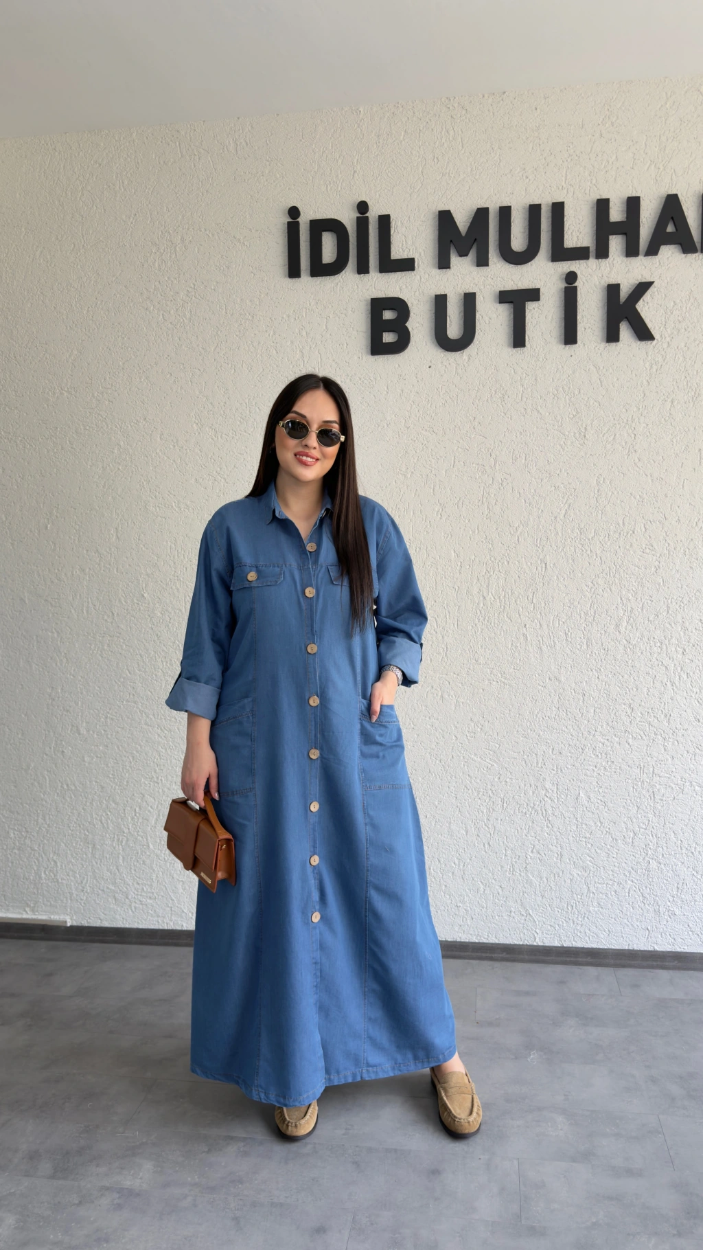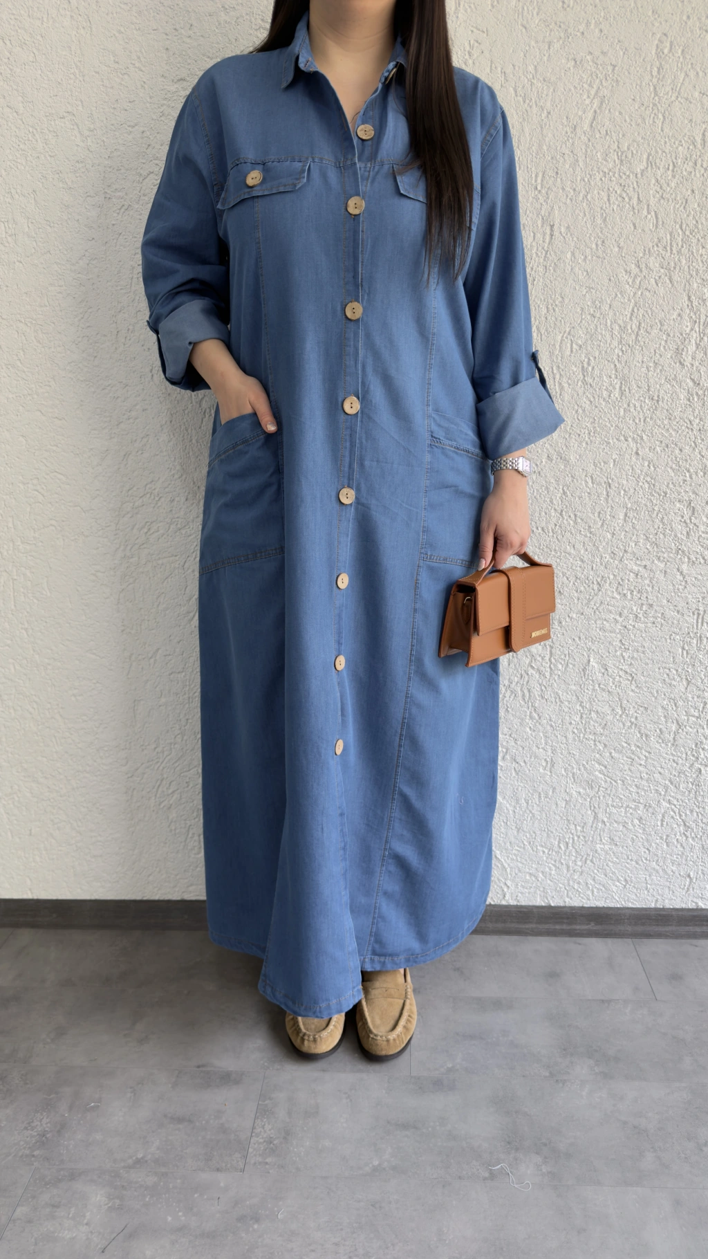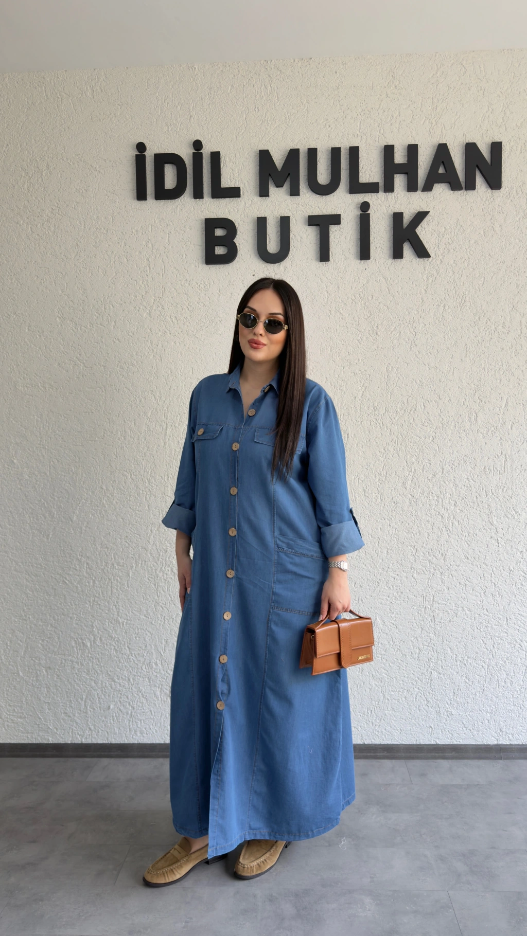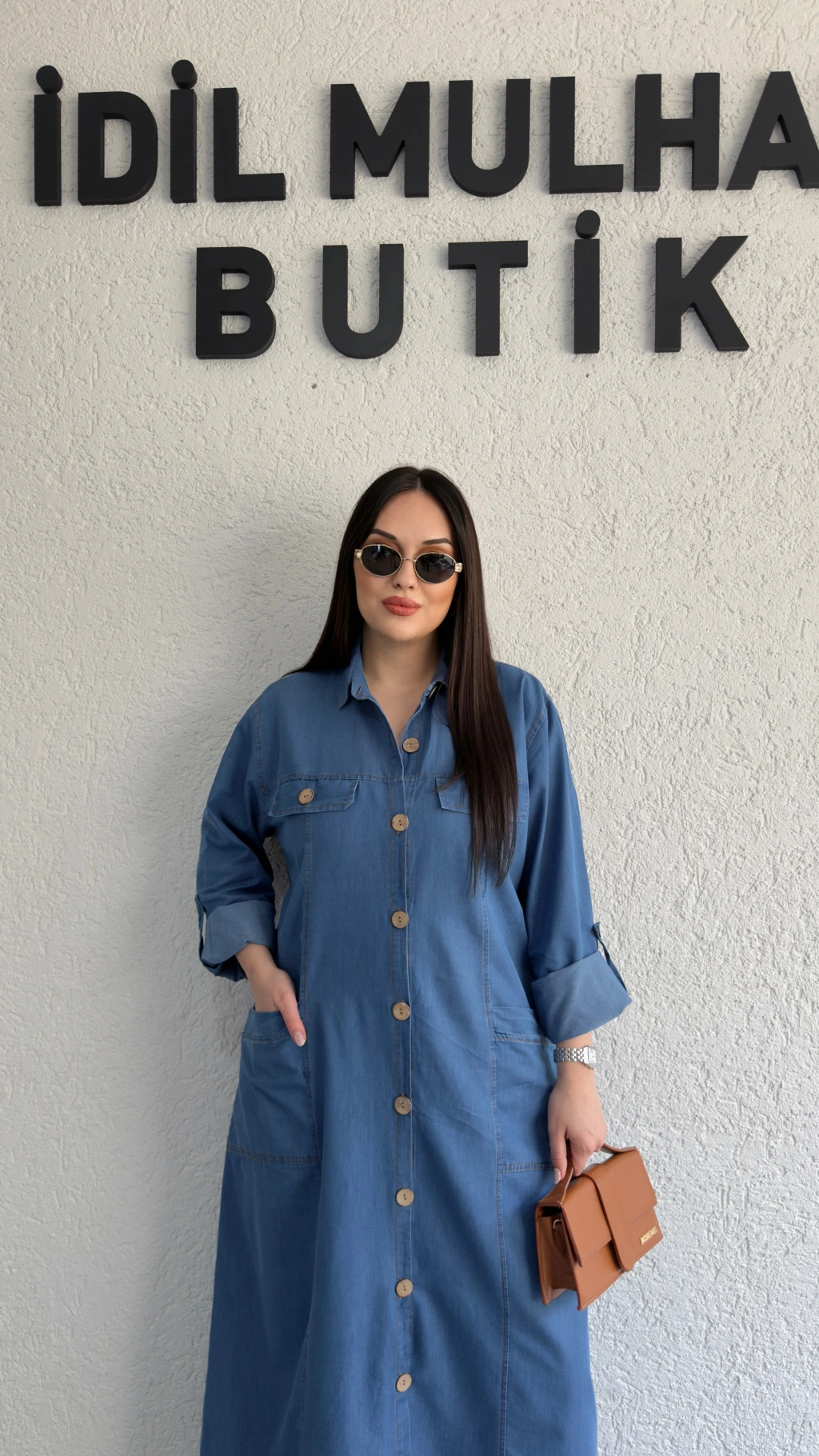Mavi Premium Kot Cep Detaylı Gömlek Elbise