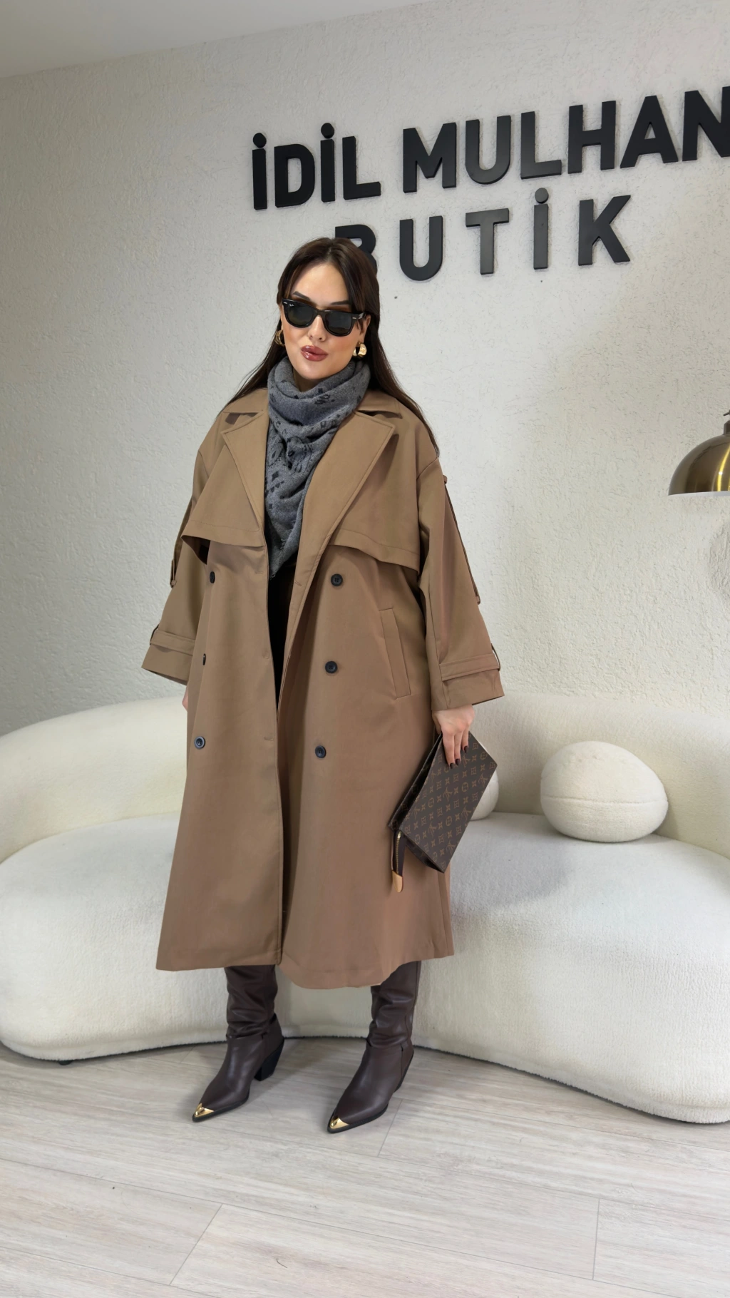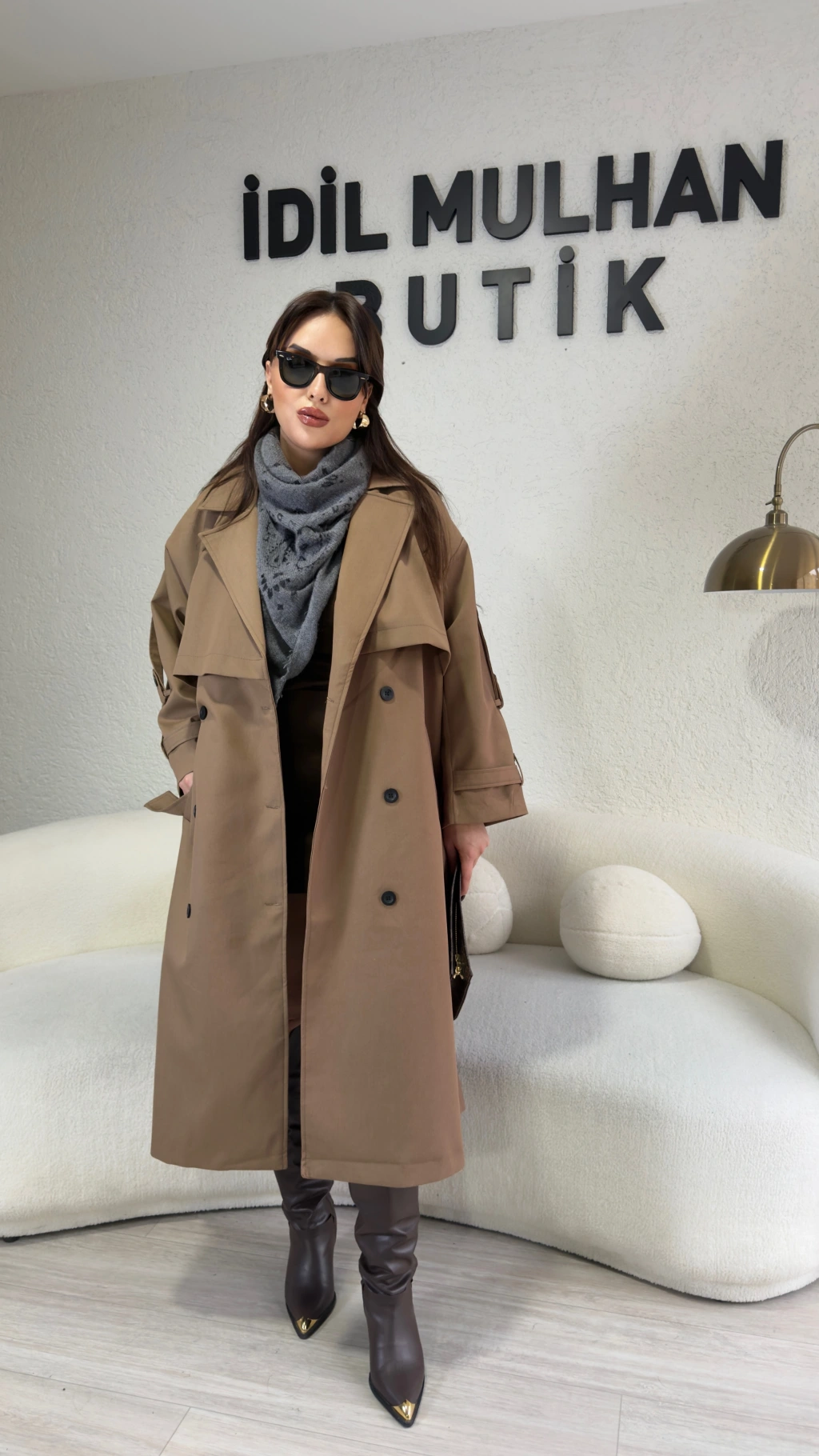 Acı Kahve Gold Fermuarlı Oysh Kumaş Elbise