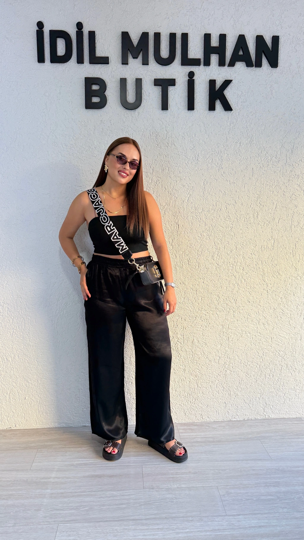 Siyah Bağlama Detaylı Kruvaze Blazer Takım
