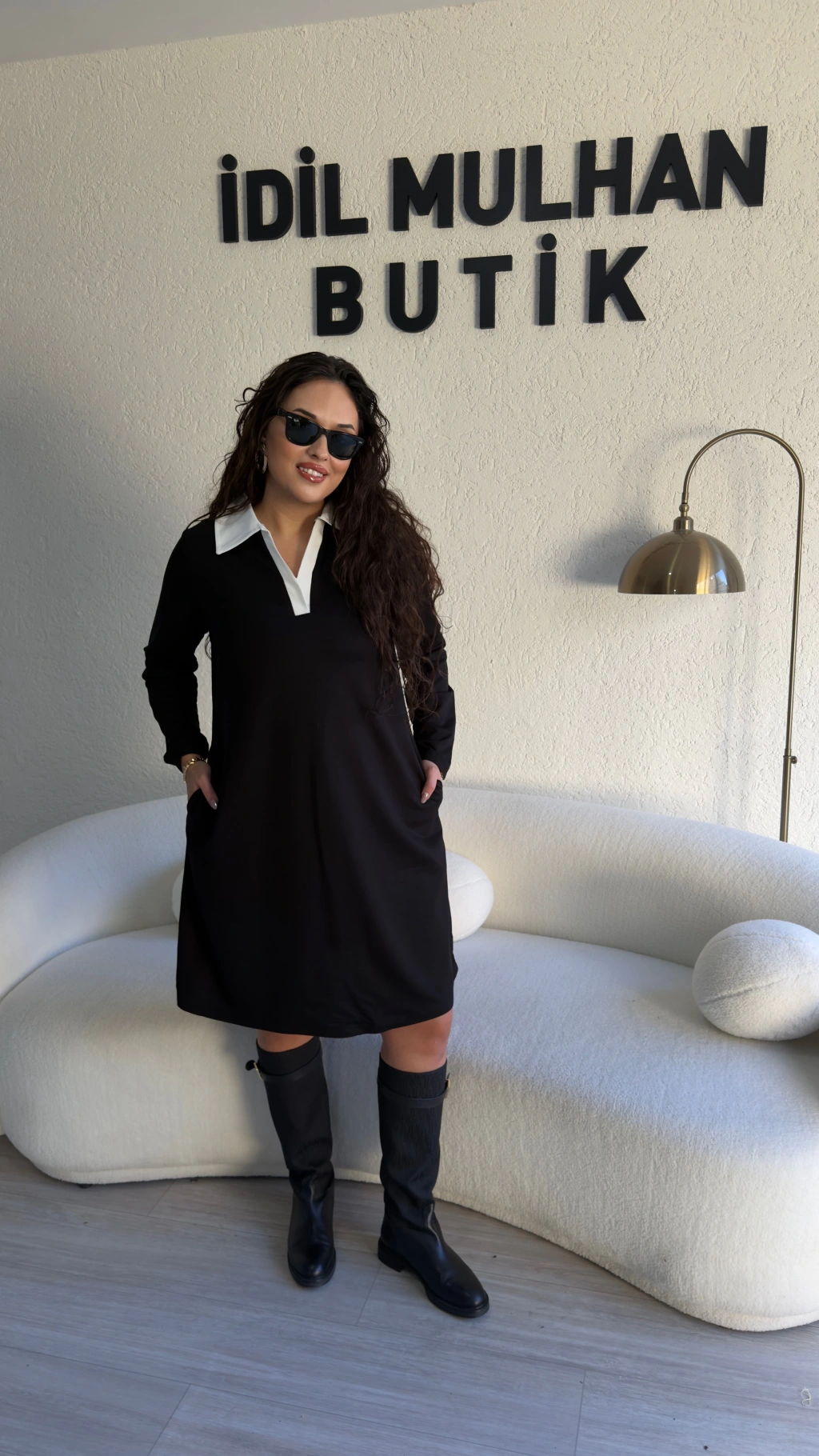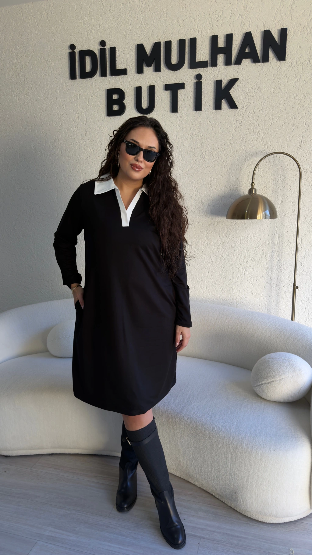 Siyah Beyaz Gömlek Yaka Elbise
