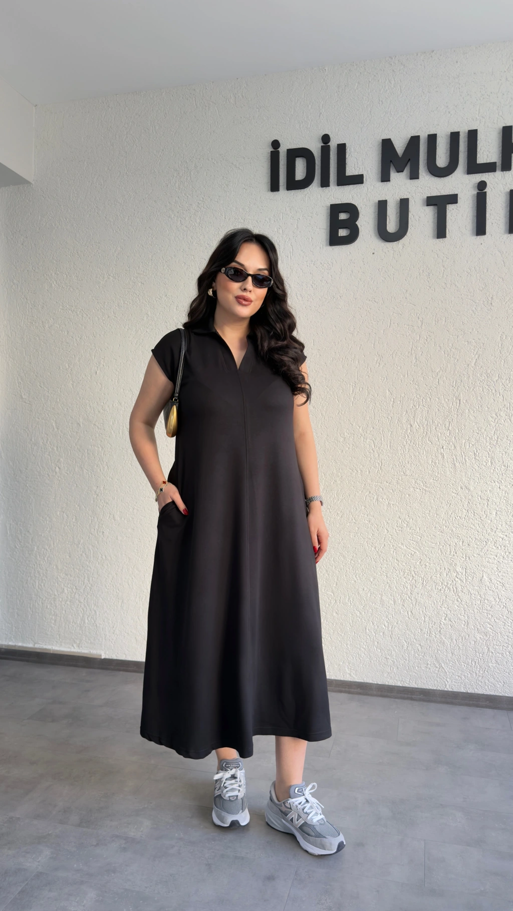Kahverengi Cepli Oysh Kumaş Maxi Elbise