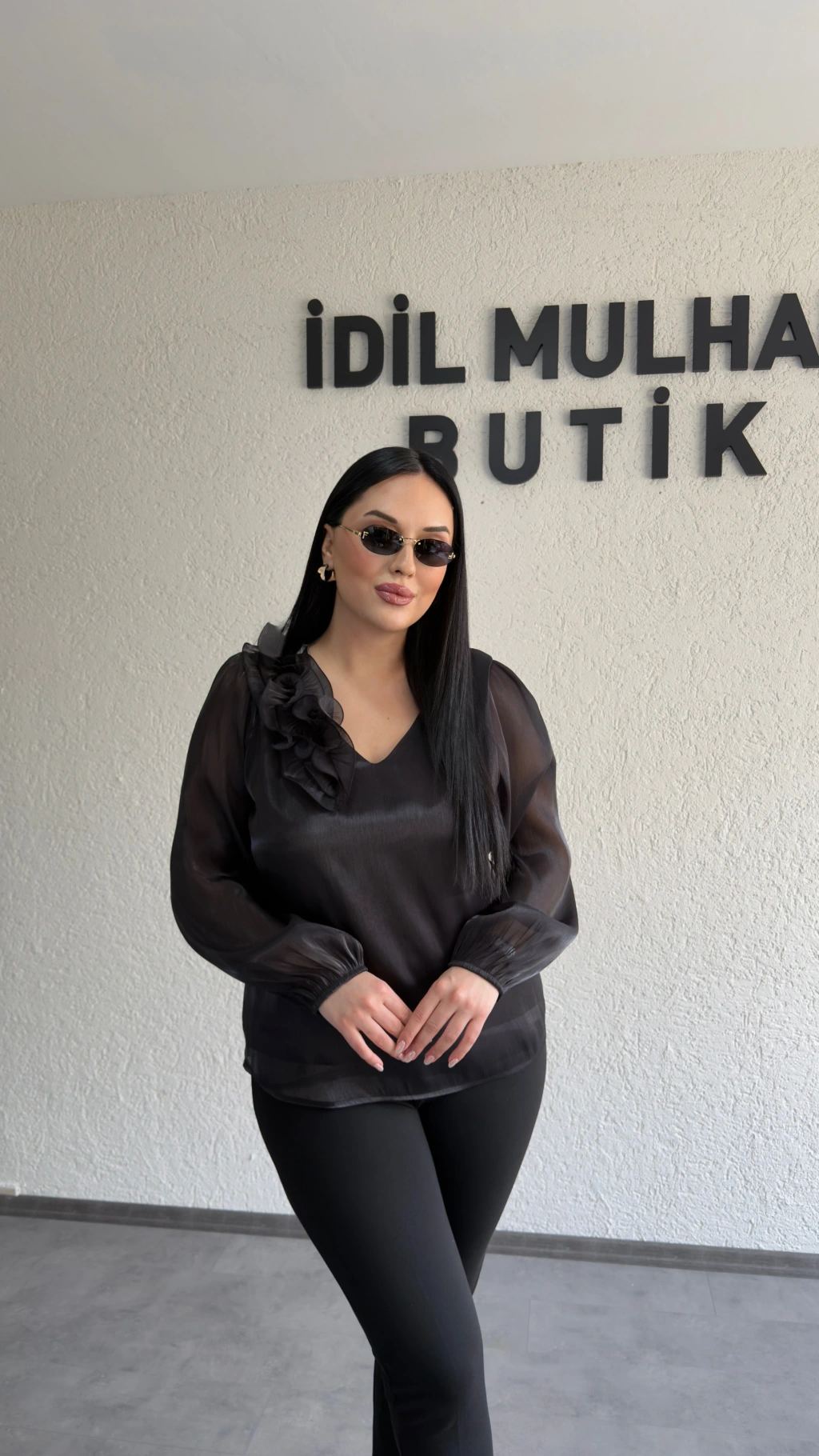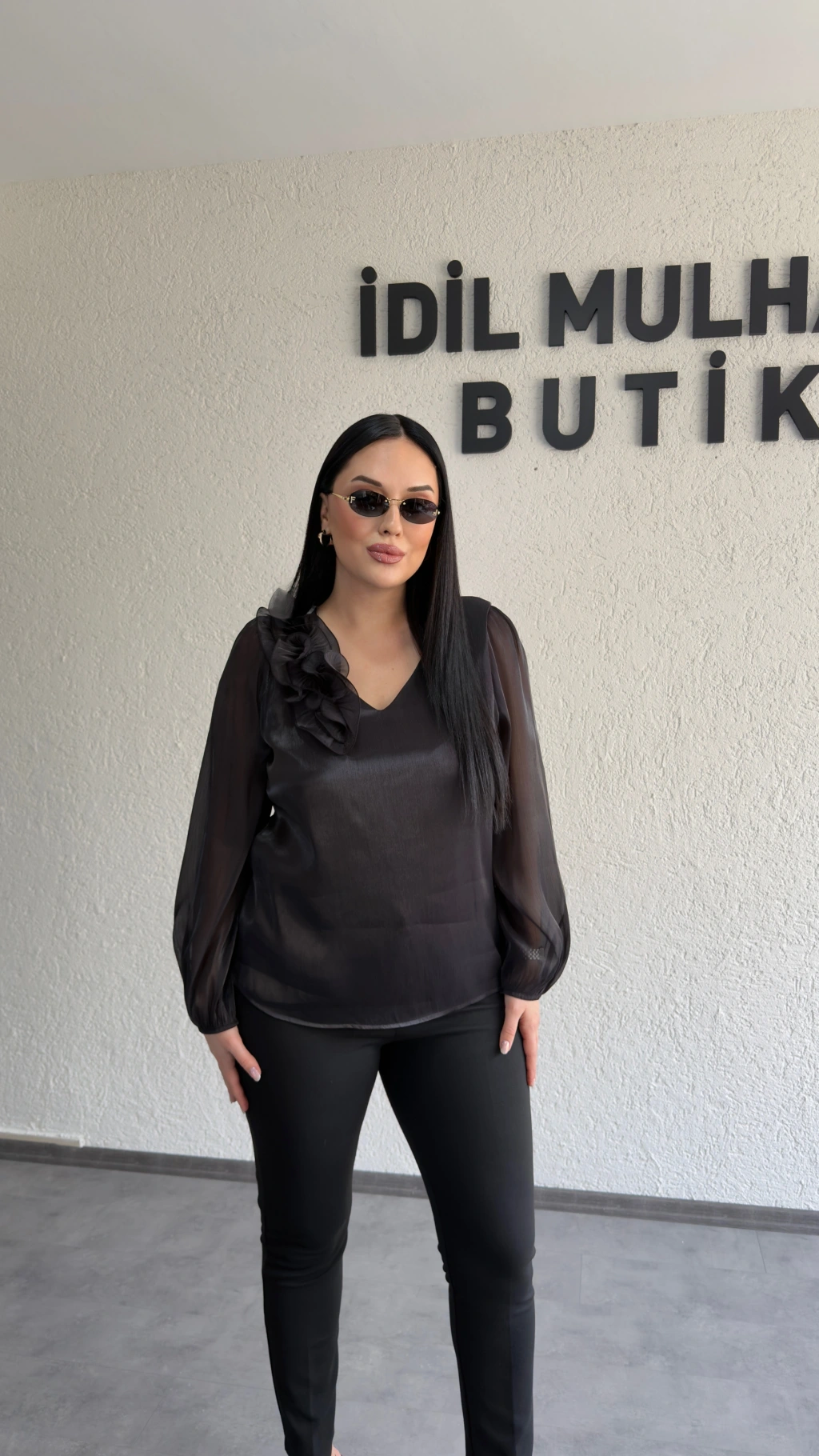 Siyah Çiçekli Organze Bluz