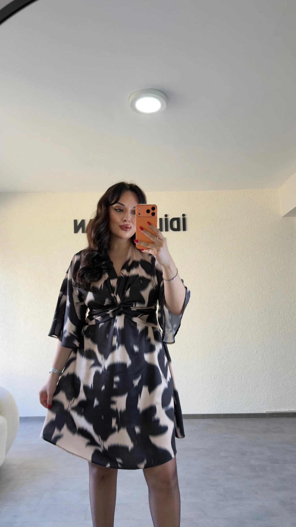 Siyah Desenli Büzgü Detaylı Elbise