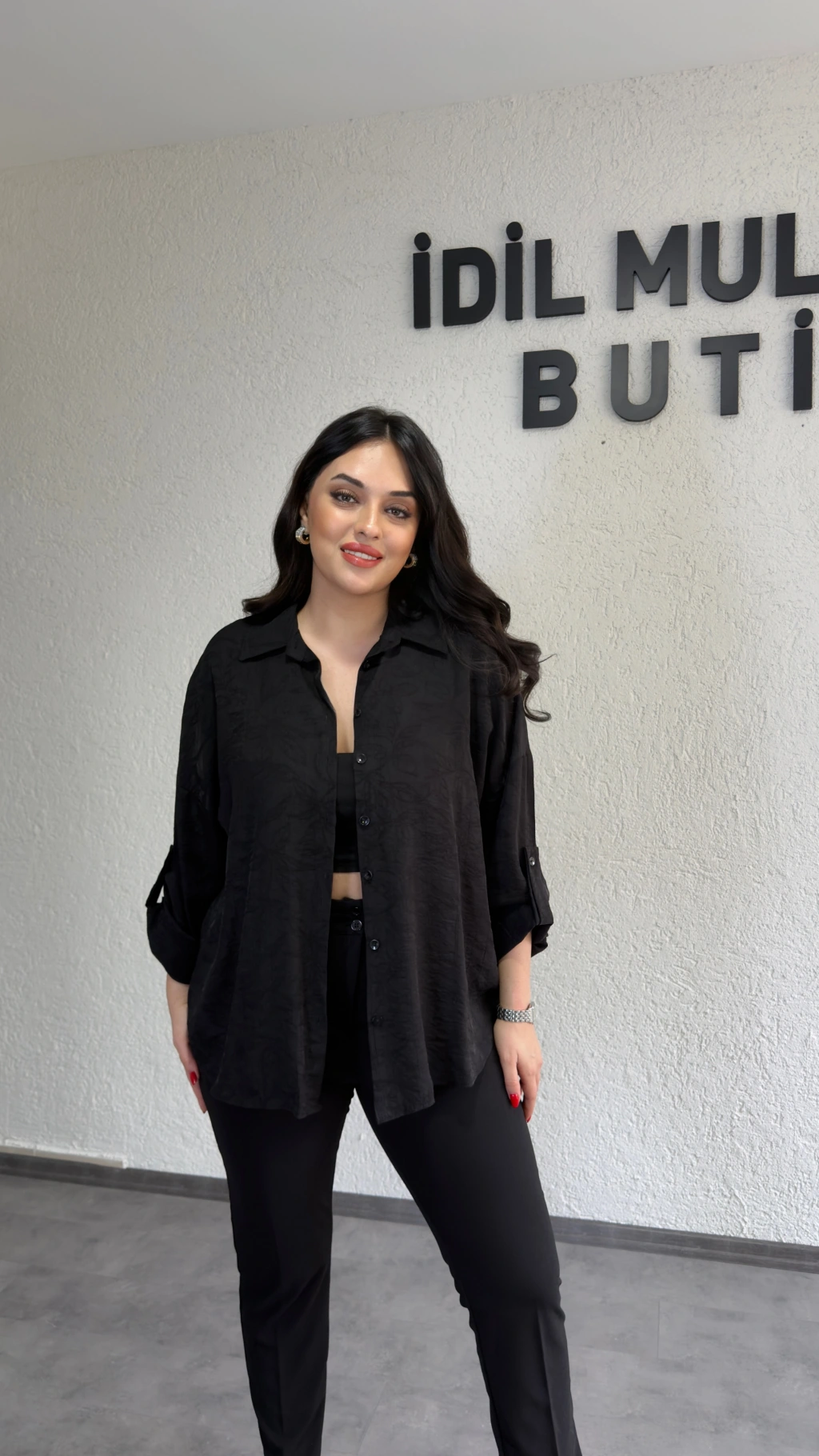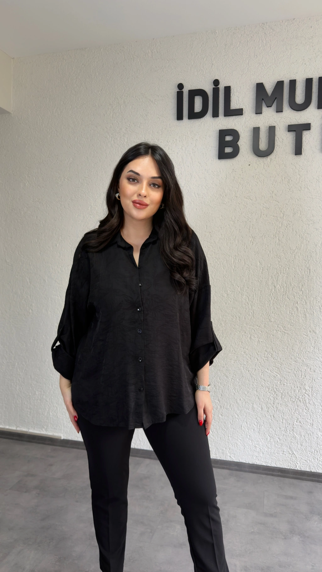 Siyah Dokulu Kumaş Salaş Gömlek