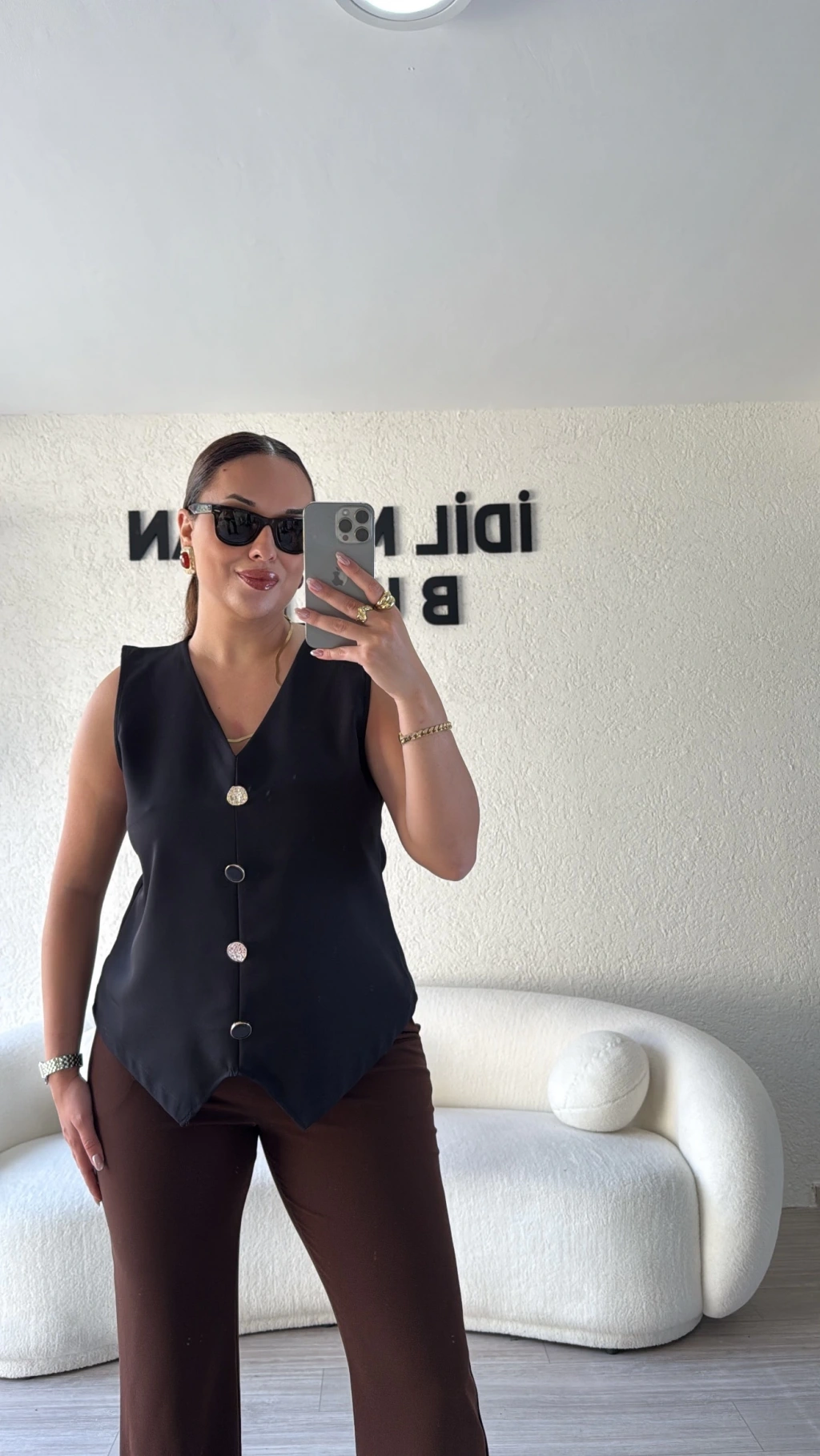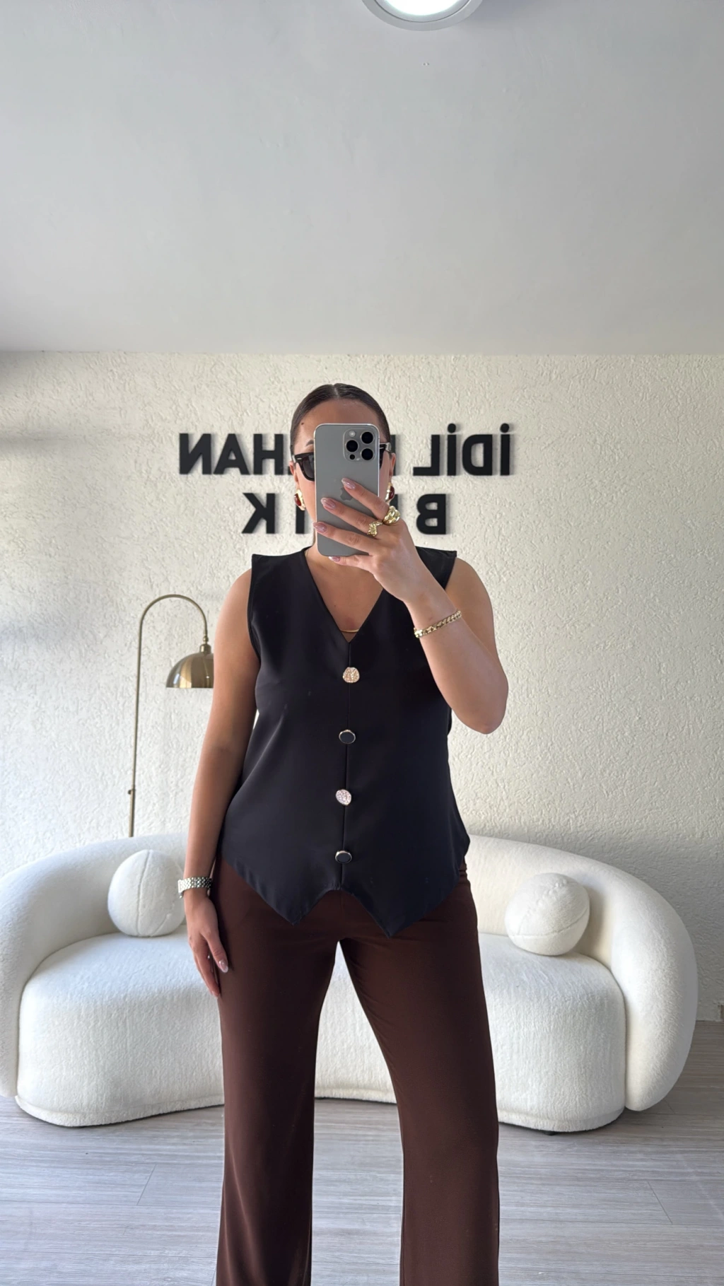 Acı Kahve Şifon Kol Gold Düğme Detaylı Elbise