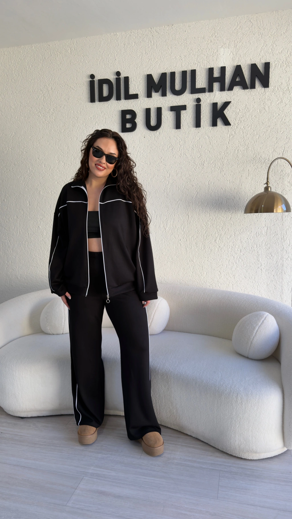 Siyah Fermuarlı Üstlü Şerit Detaylı Takım