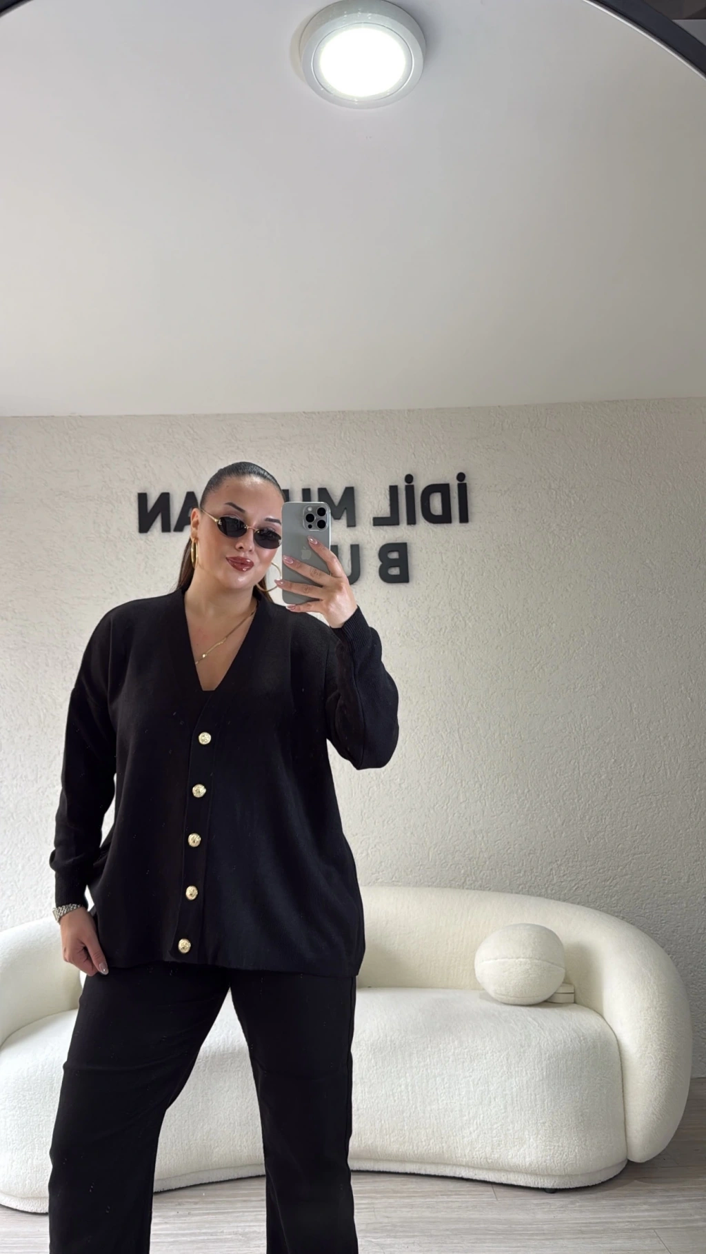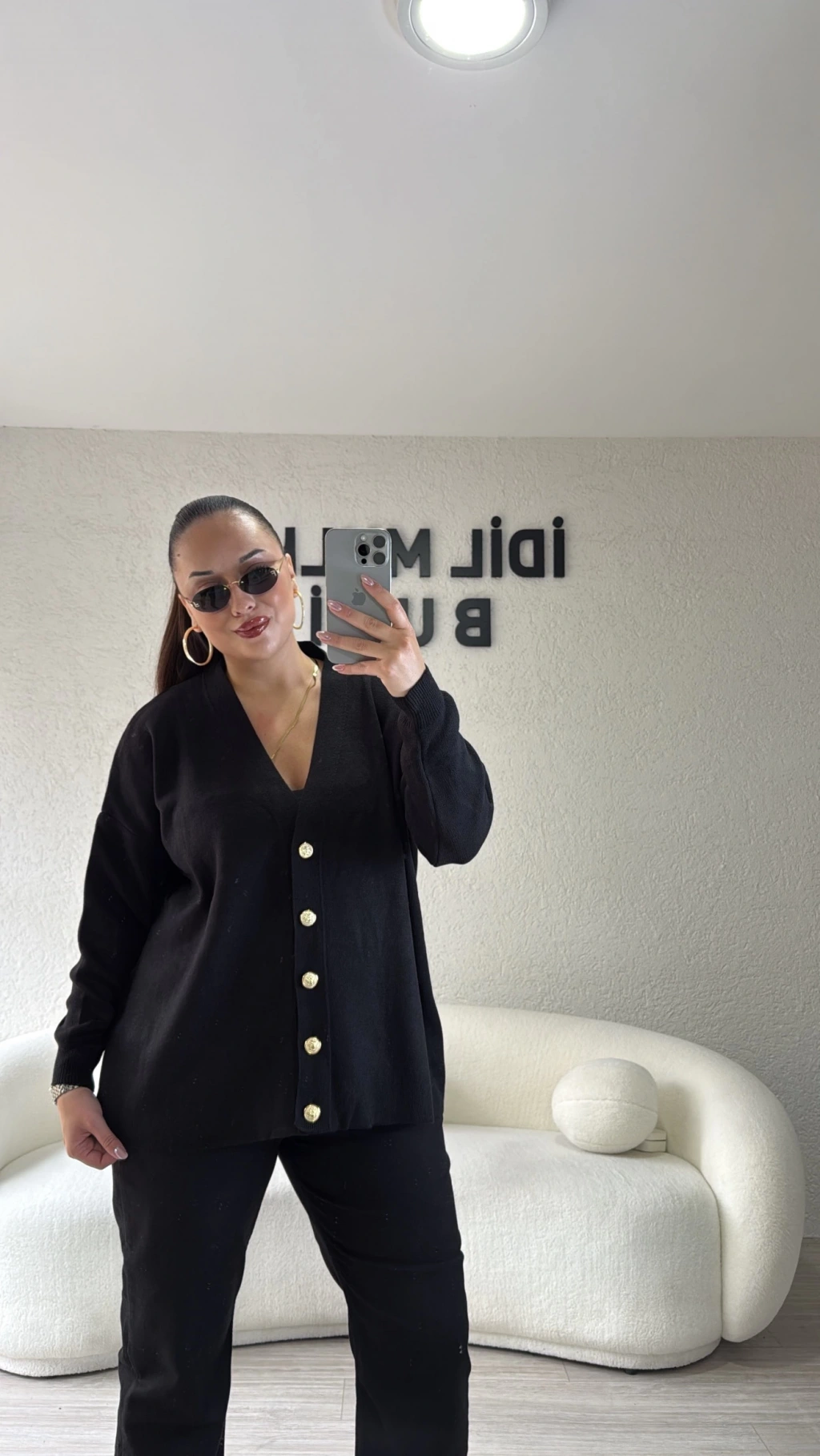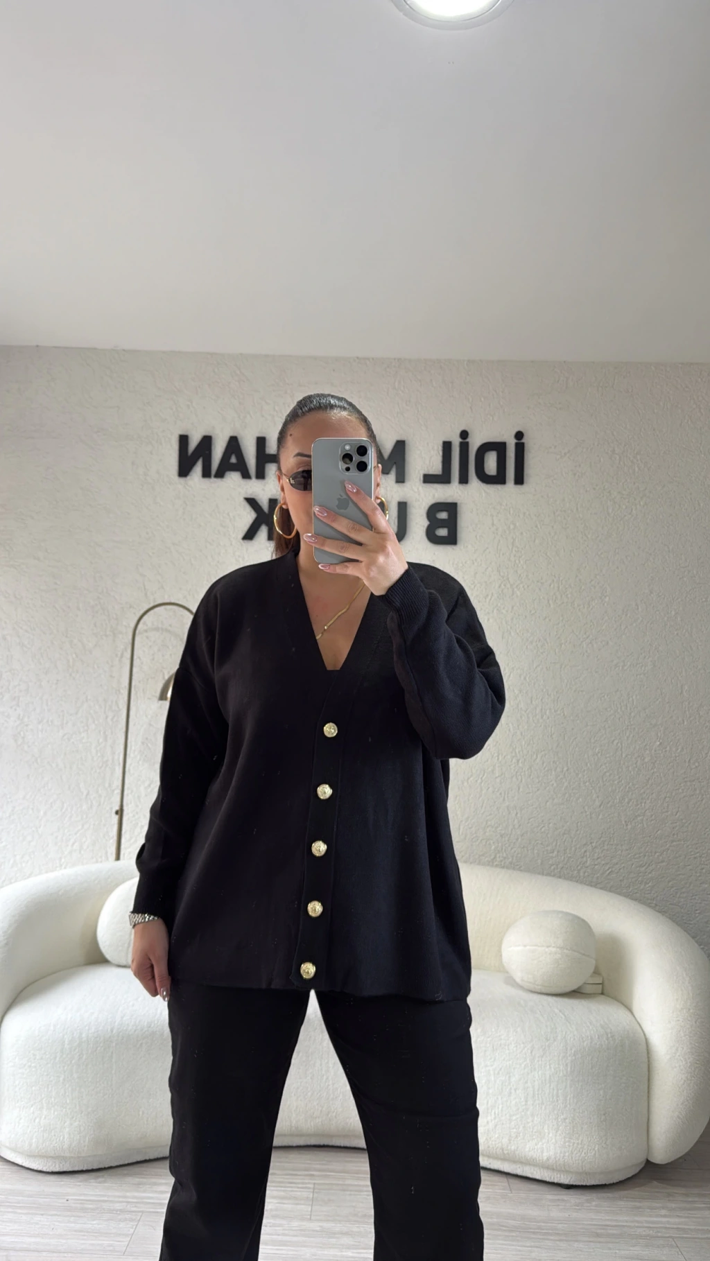 Siyah Gold Düğmeli Triko Hırka
