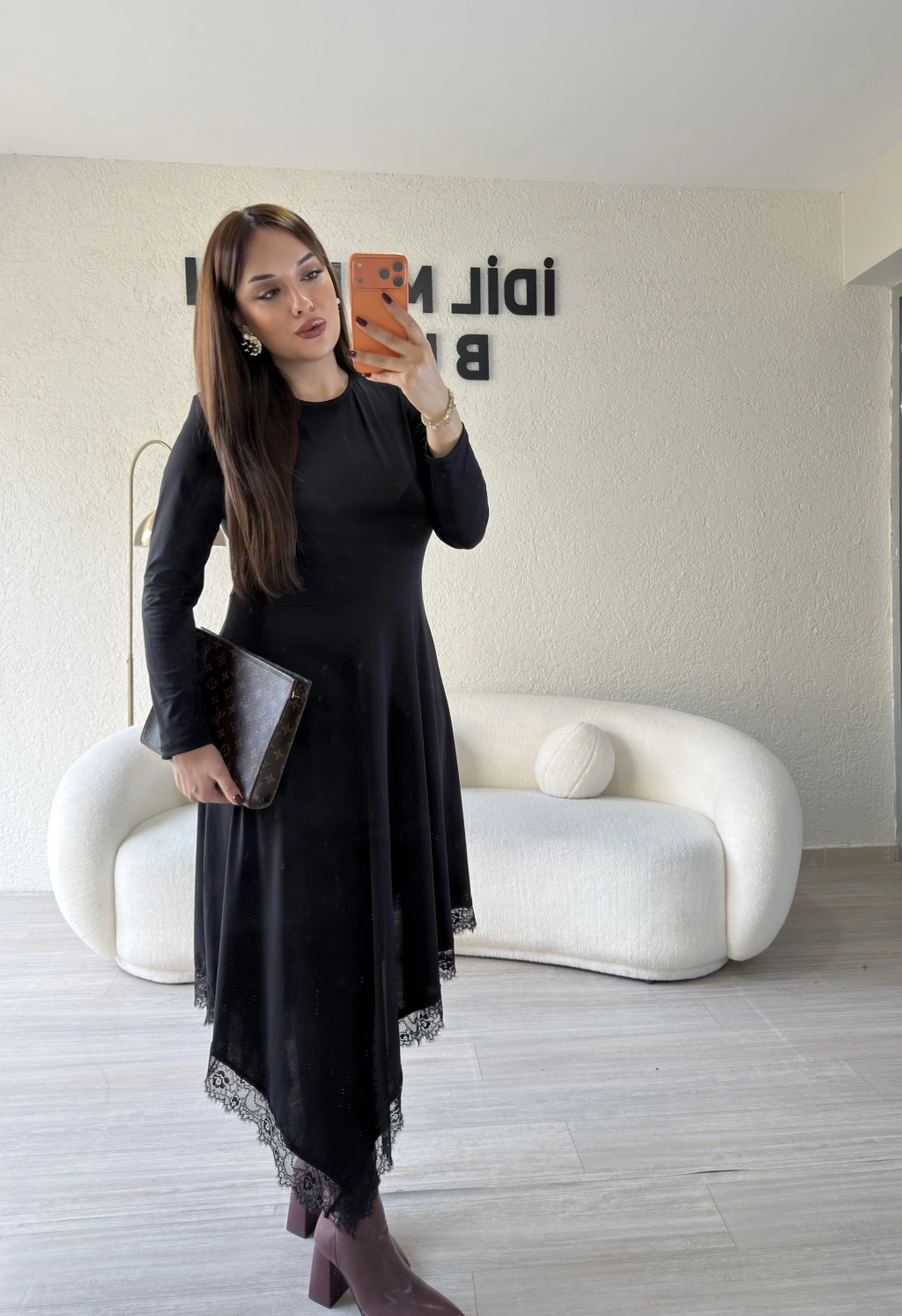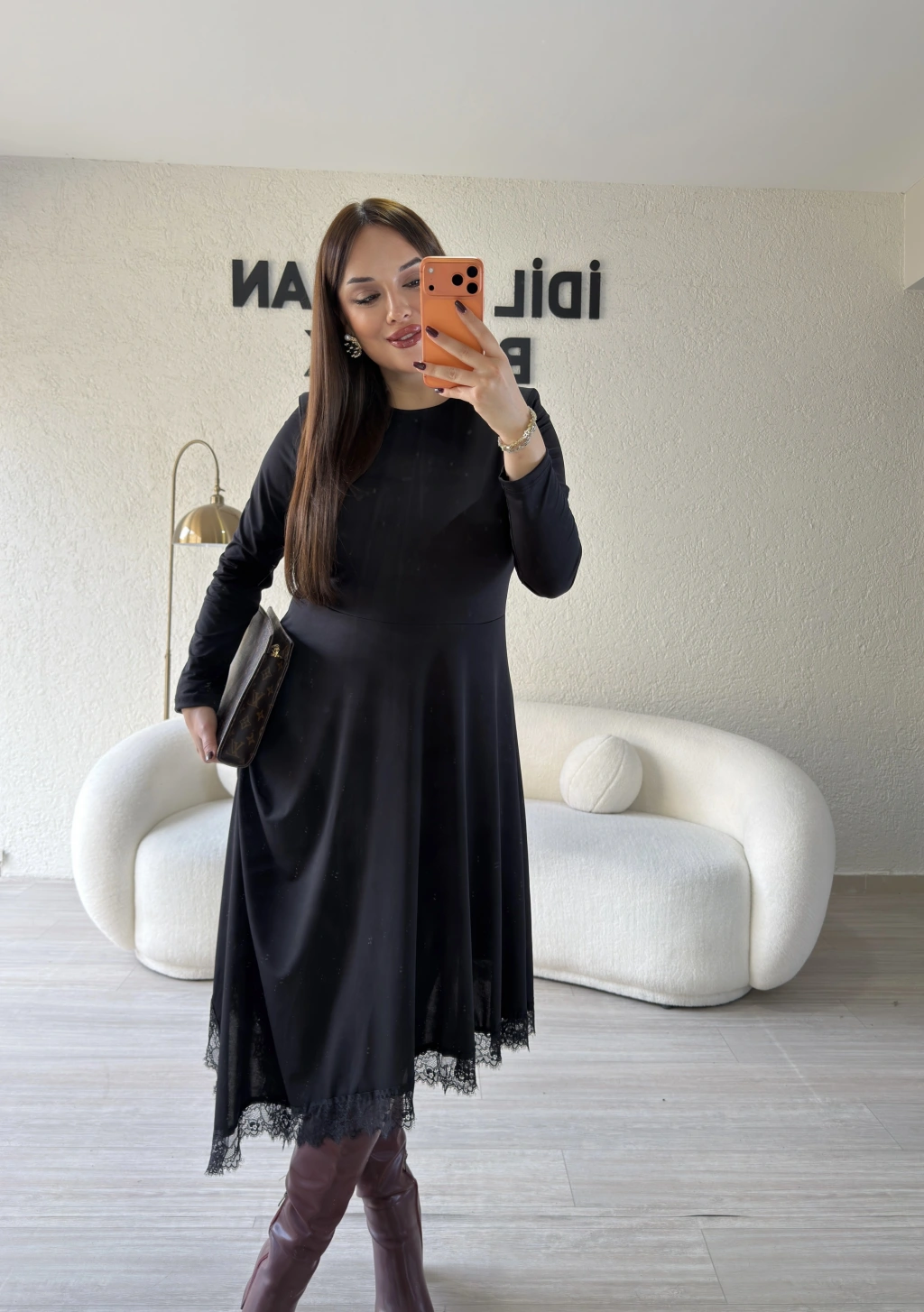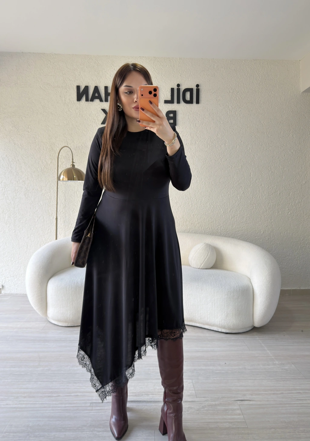Siyah Güpür Detaylı Sandy Elbise