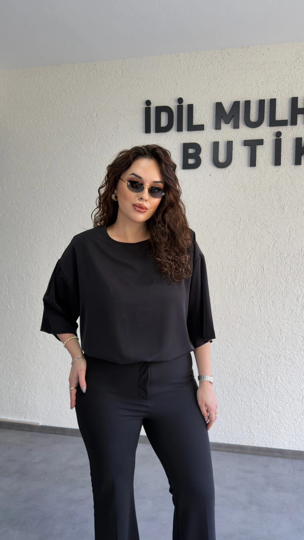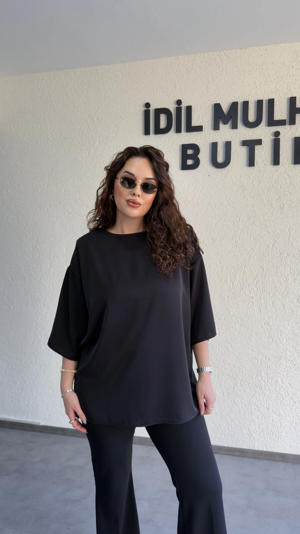 Siyah Oysh Kumaş V Yaka Salaş Takım