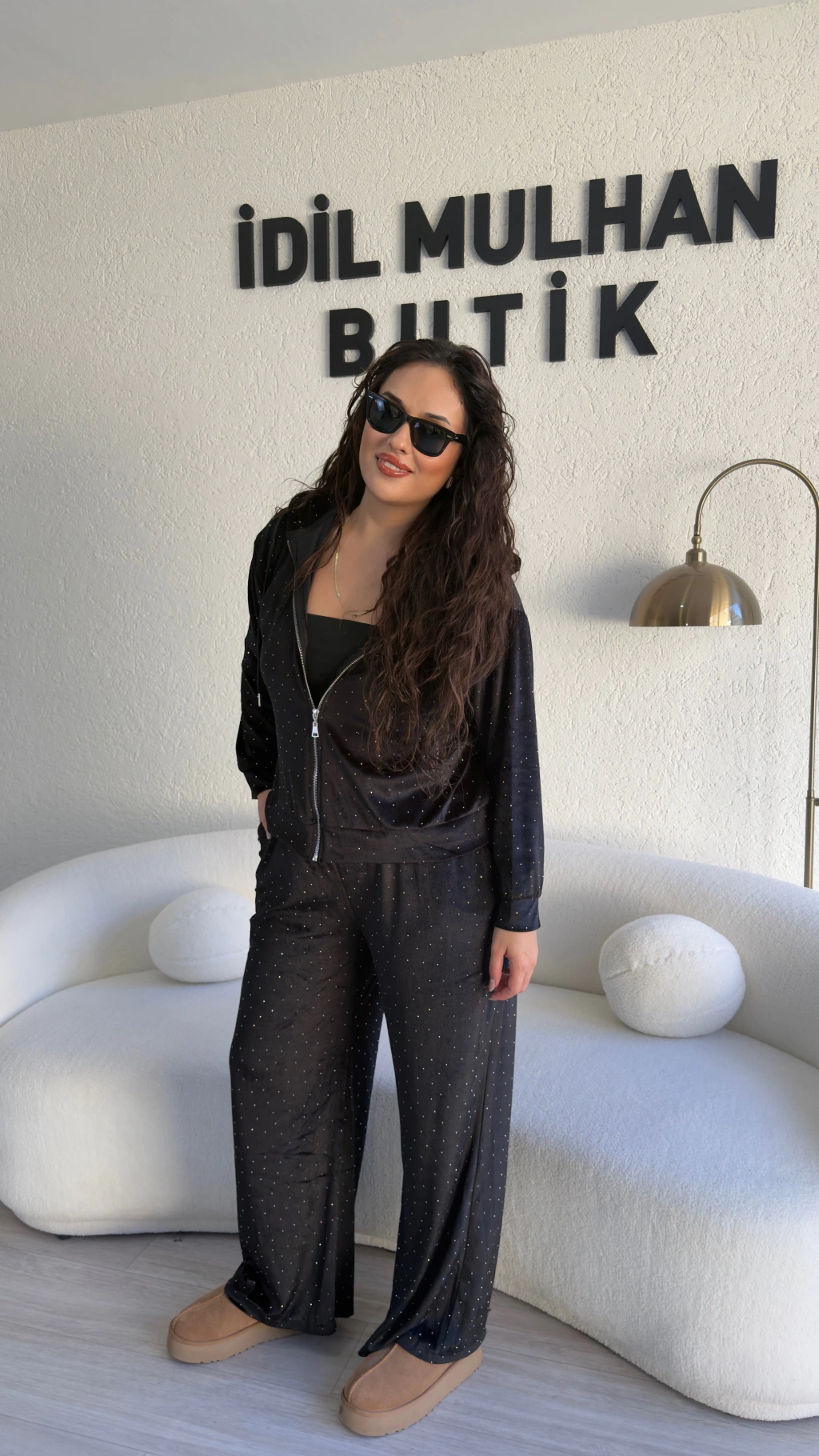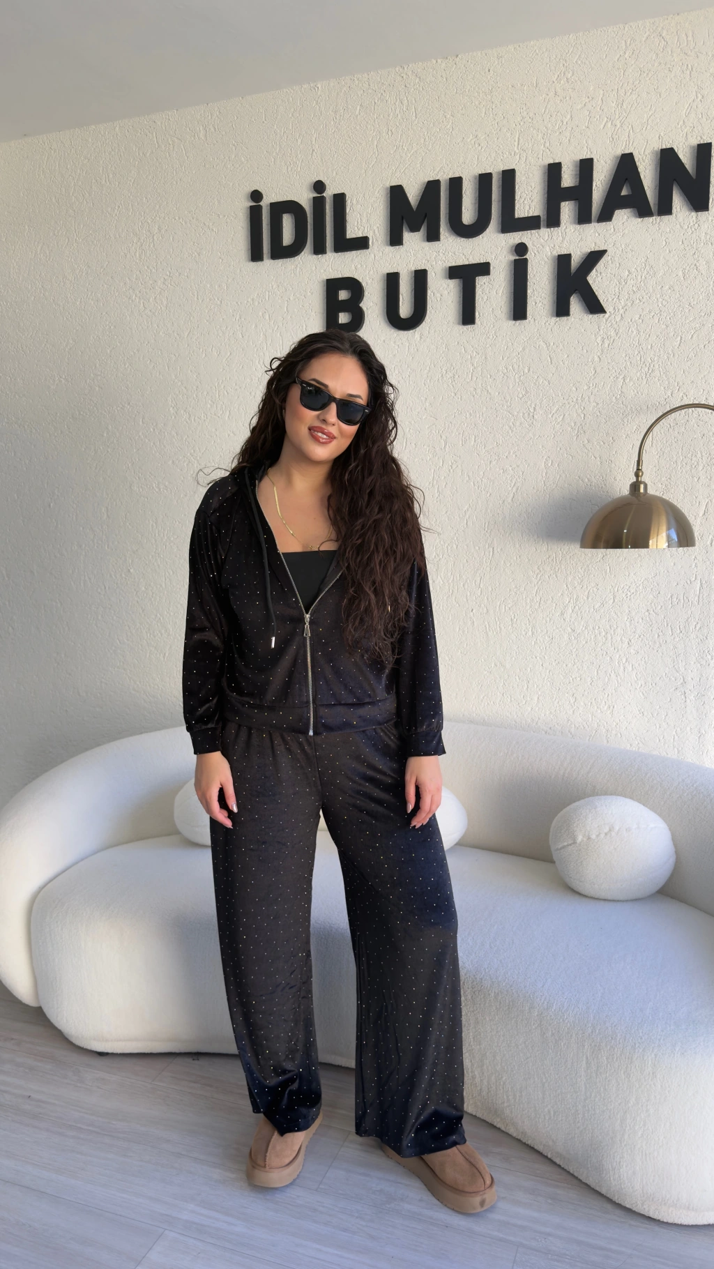 Siyah Kadife Taşlı Takım