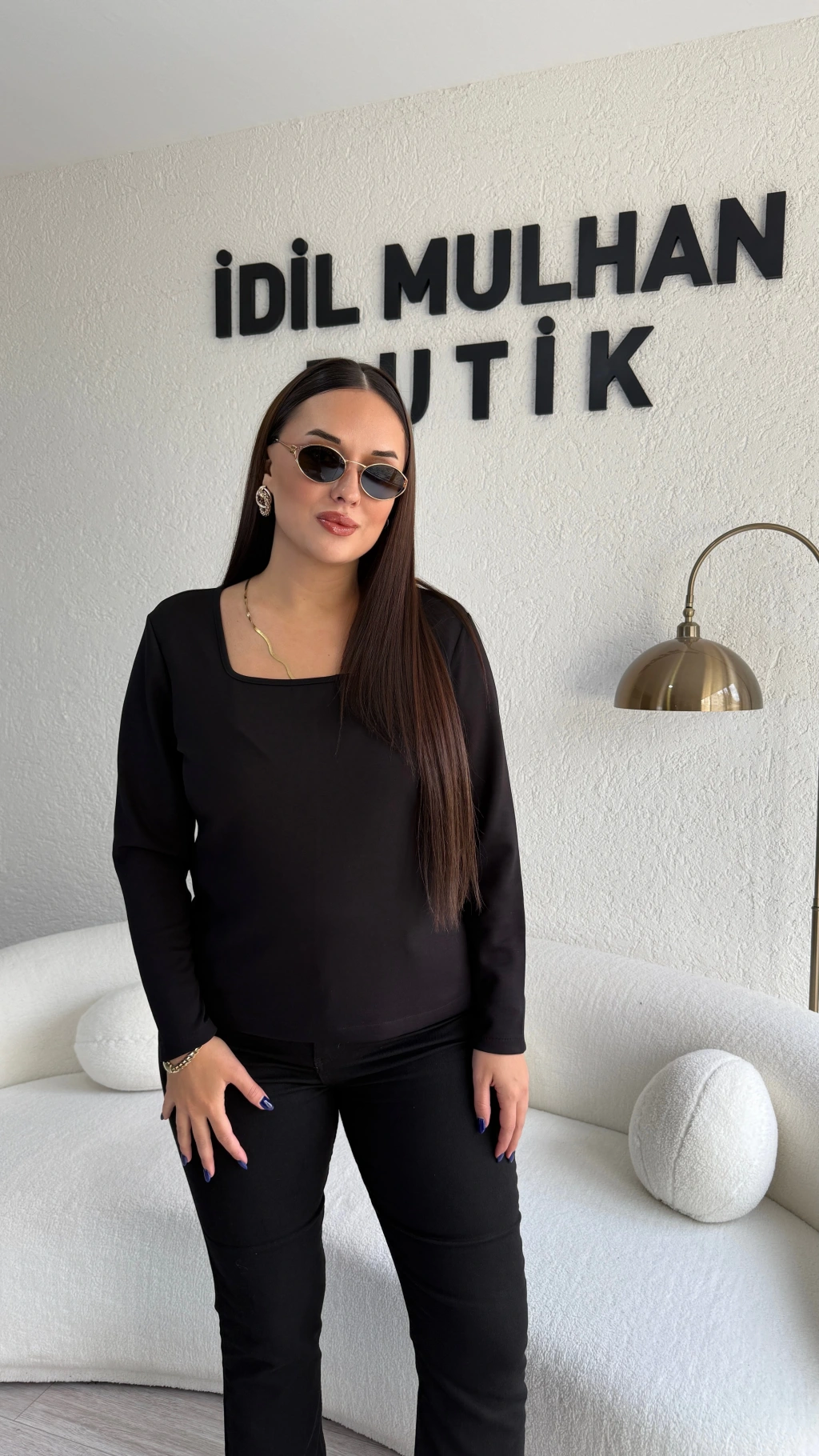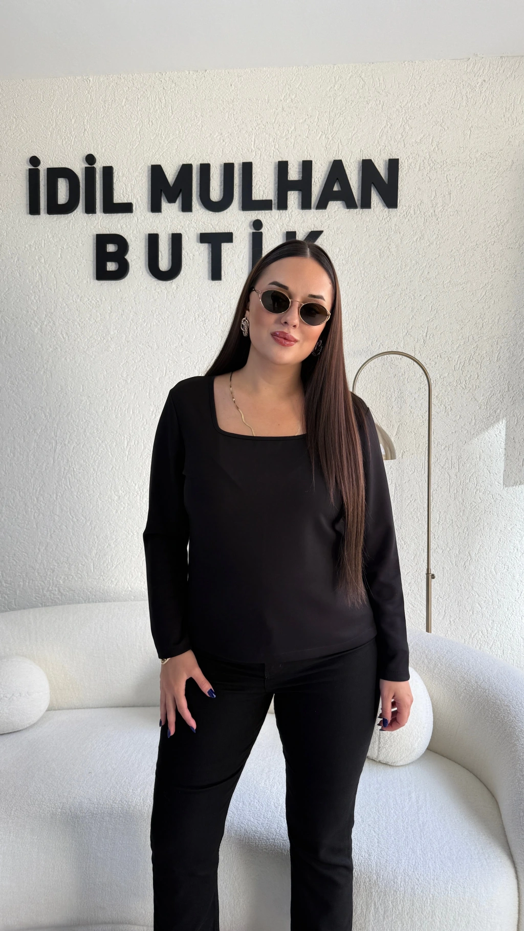 Siyah Kare Yaka Oysh Kumaş Bluz
