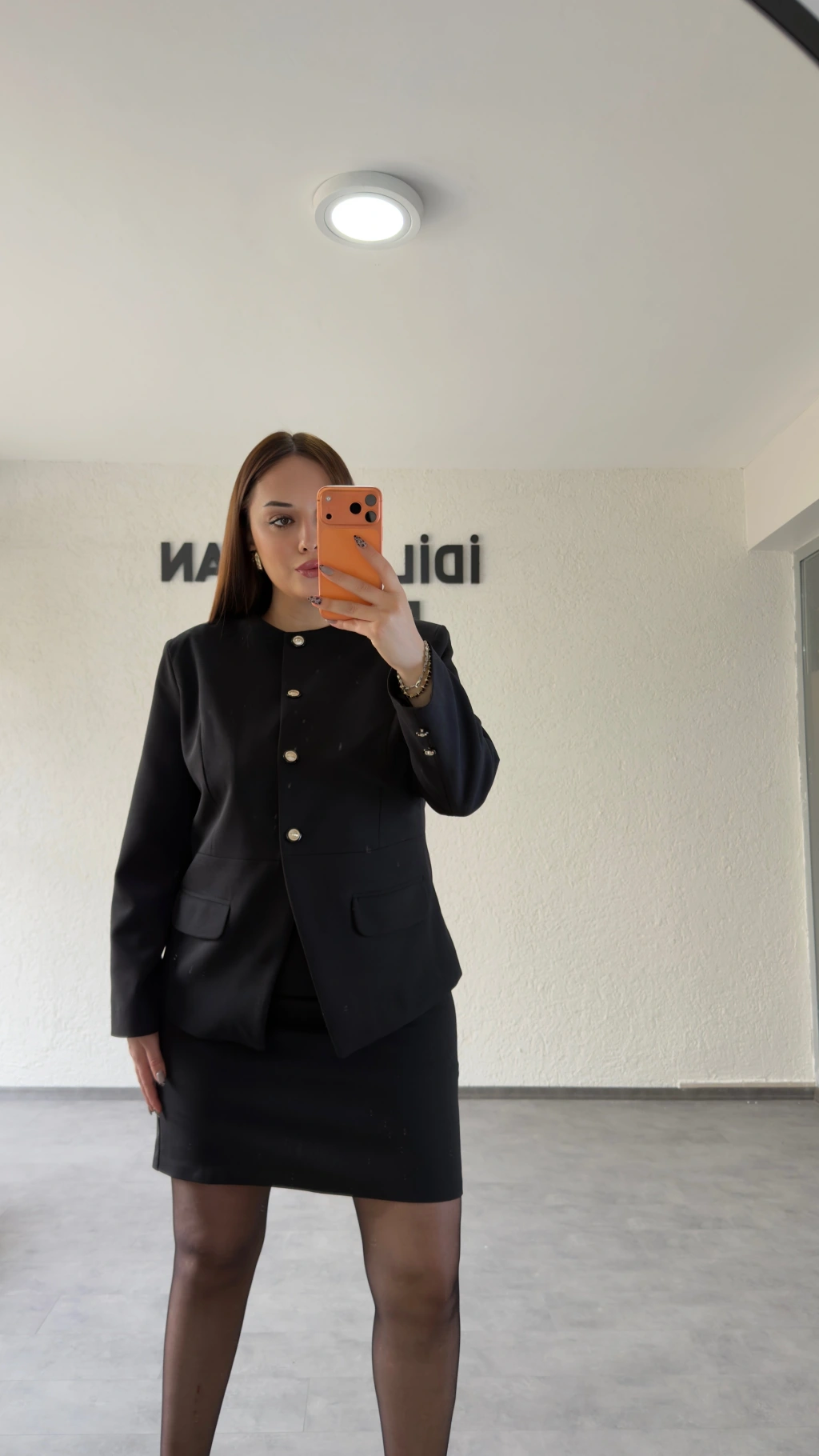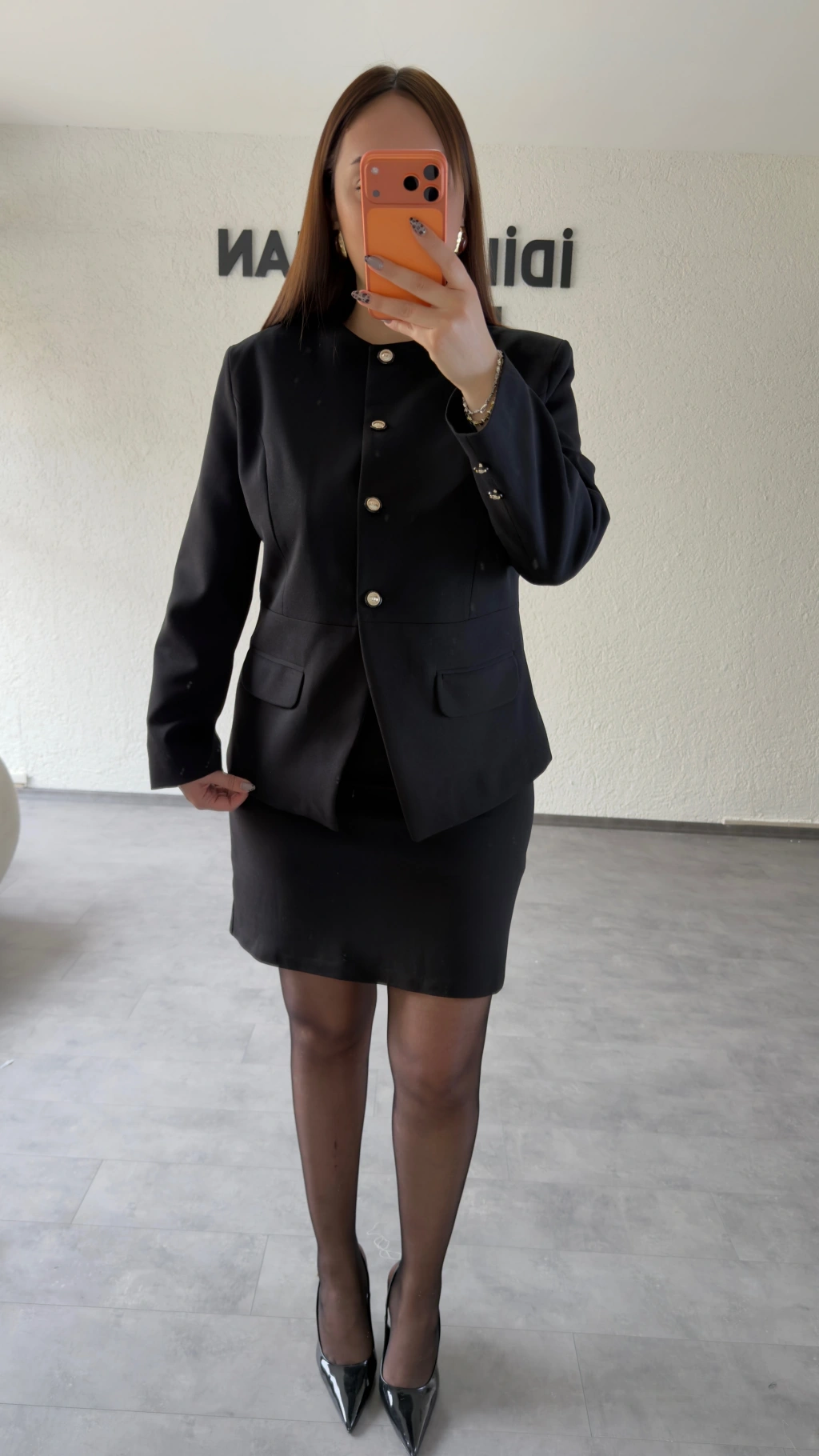 Siyah Klasik Kesim Ceket Ve Etek Premium Takım