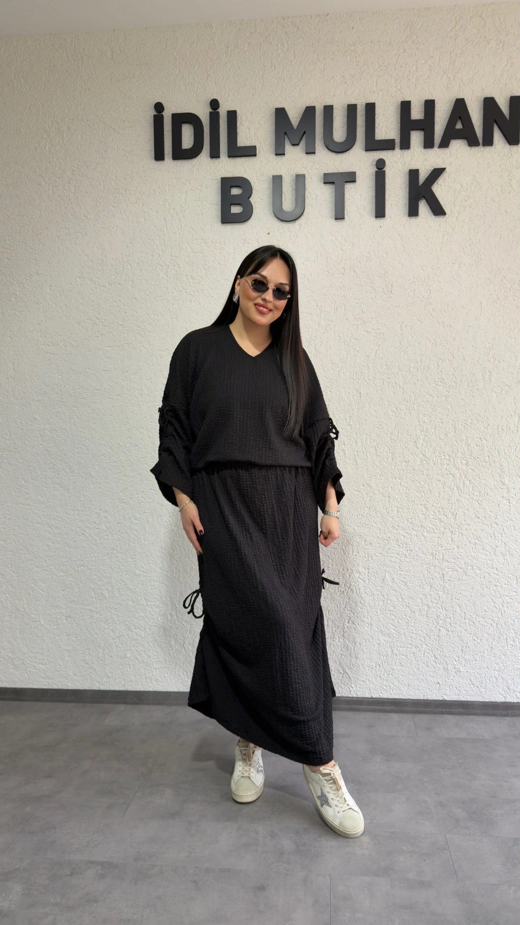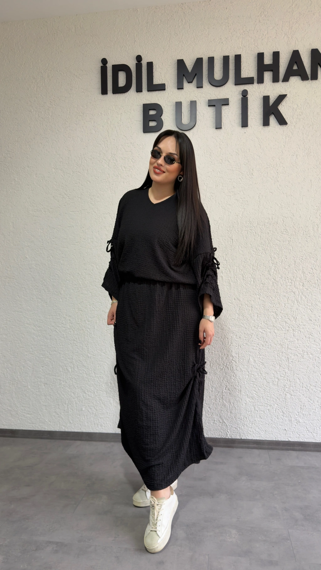 Siyah Kol Ve Etek Ucu Büzgülü Ayarlanabilir Takım