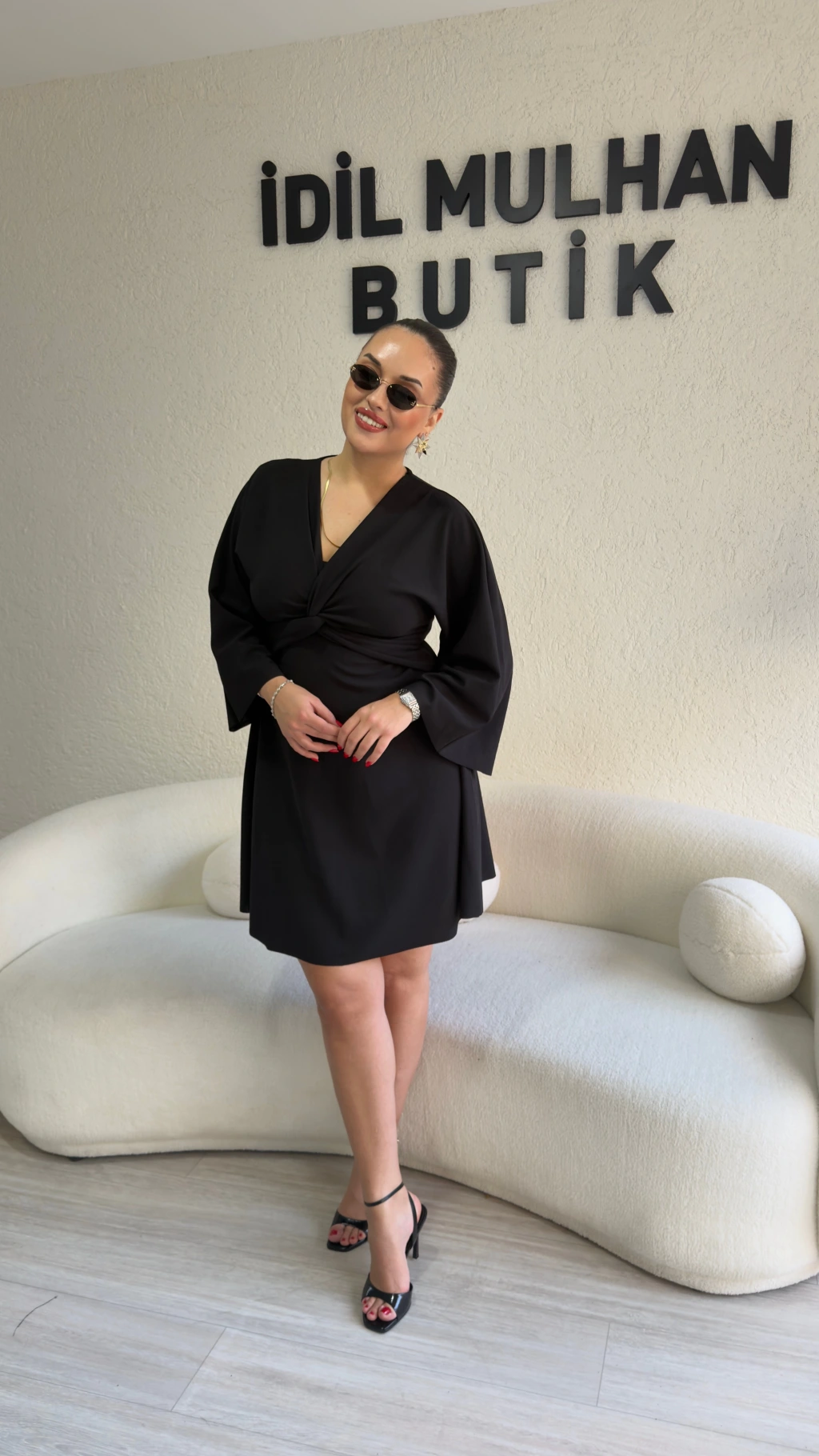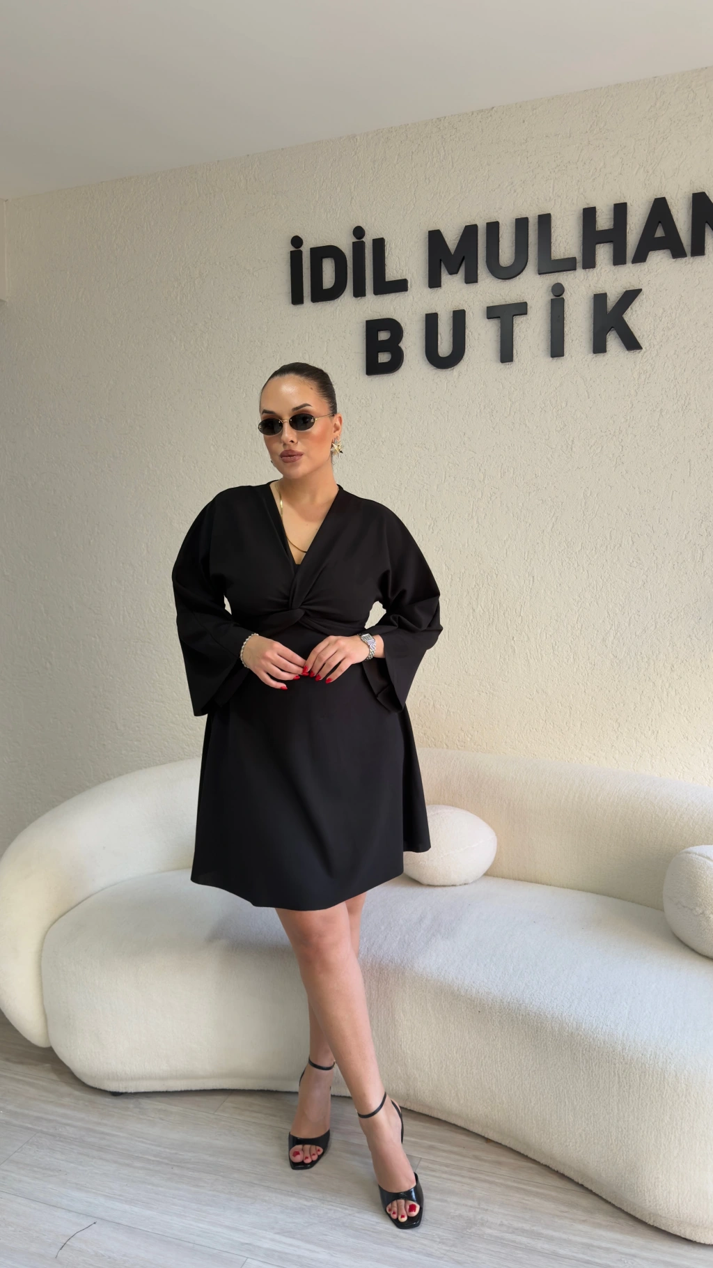 Siyah Krep Kumaş Düğüm Detaylı Elbise