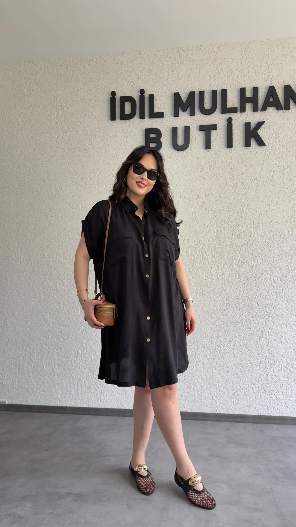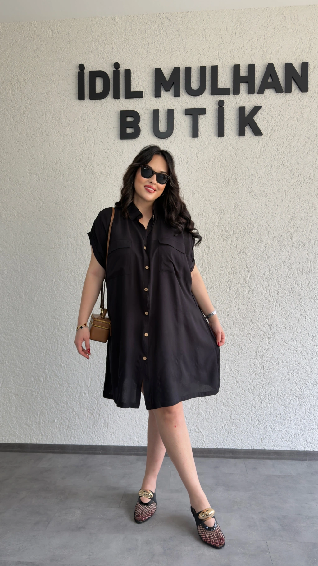 Siyah Kuşak Detaylı Gömlek Elbise