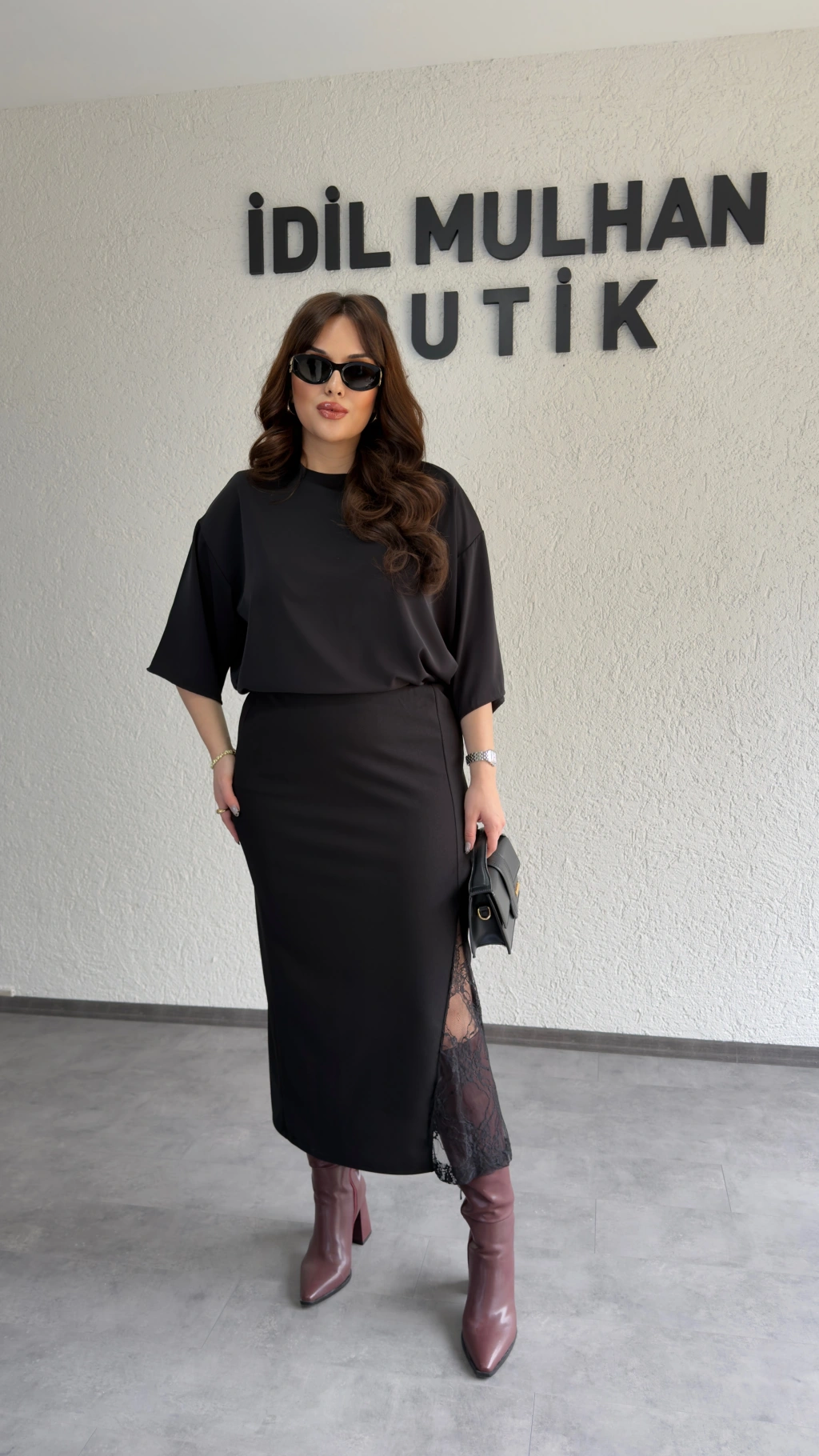 Siyah Kruvaze İki Katlı Yoryo Elbise
