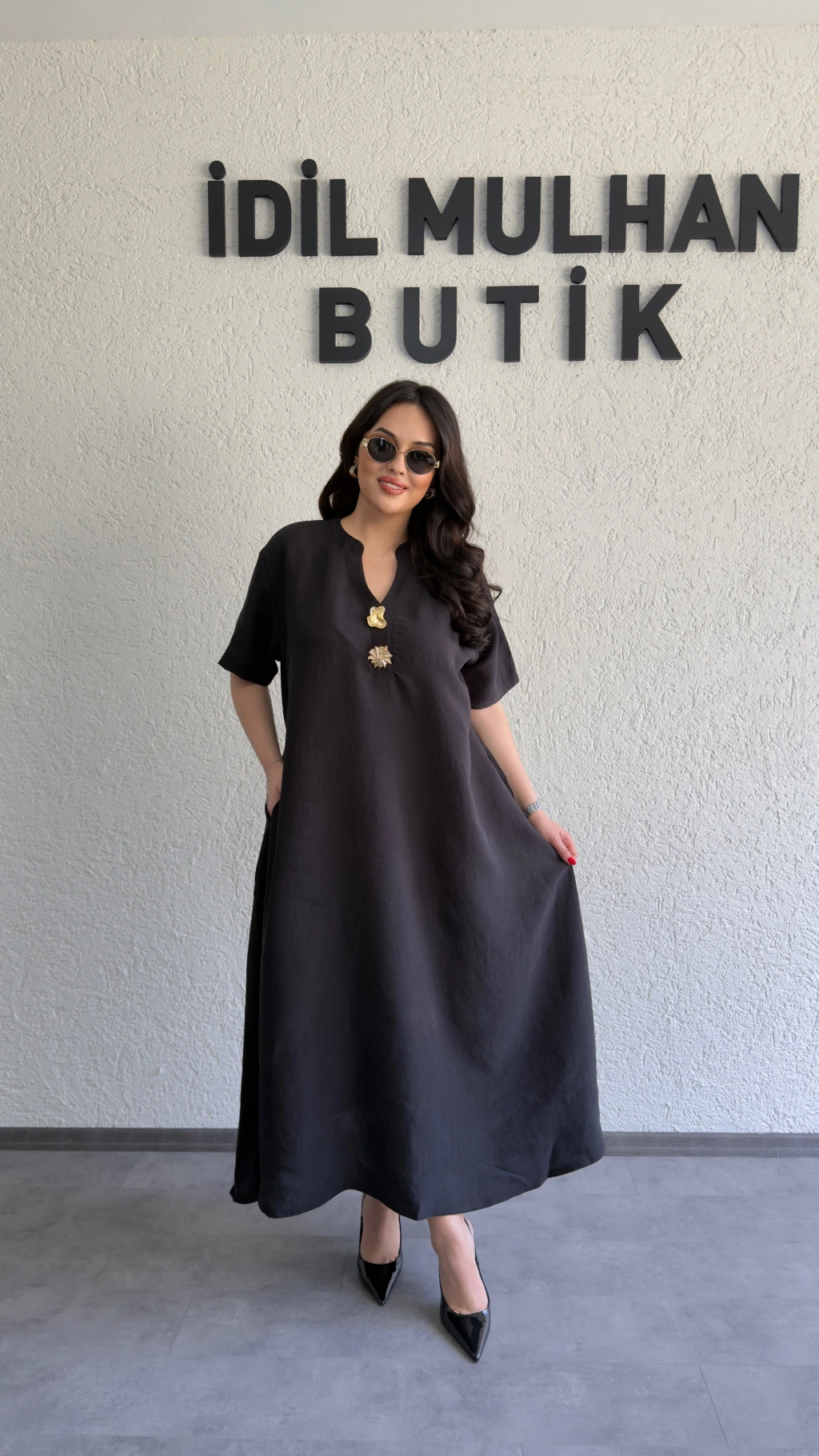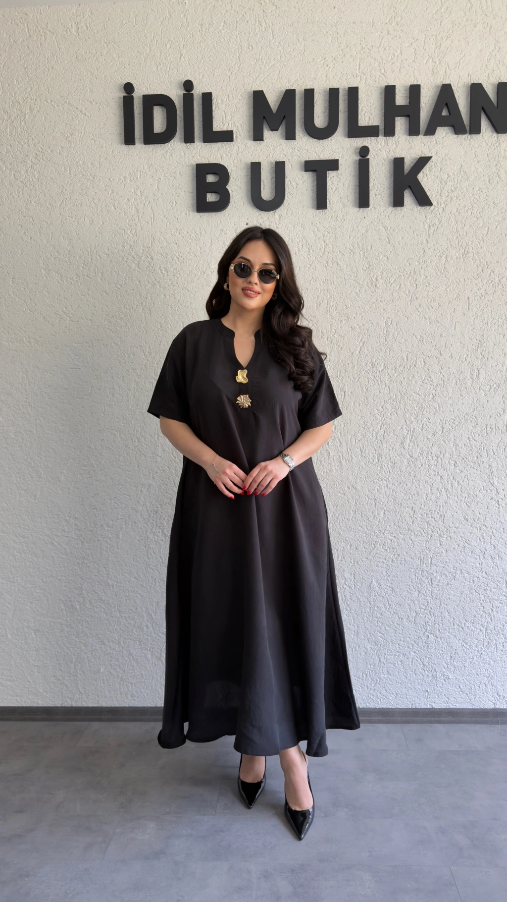 Siyah Salaş Kesim Broş Detaylı Elbise