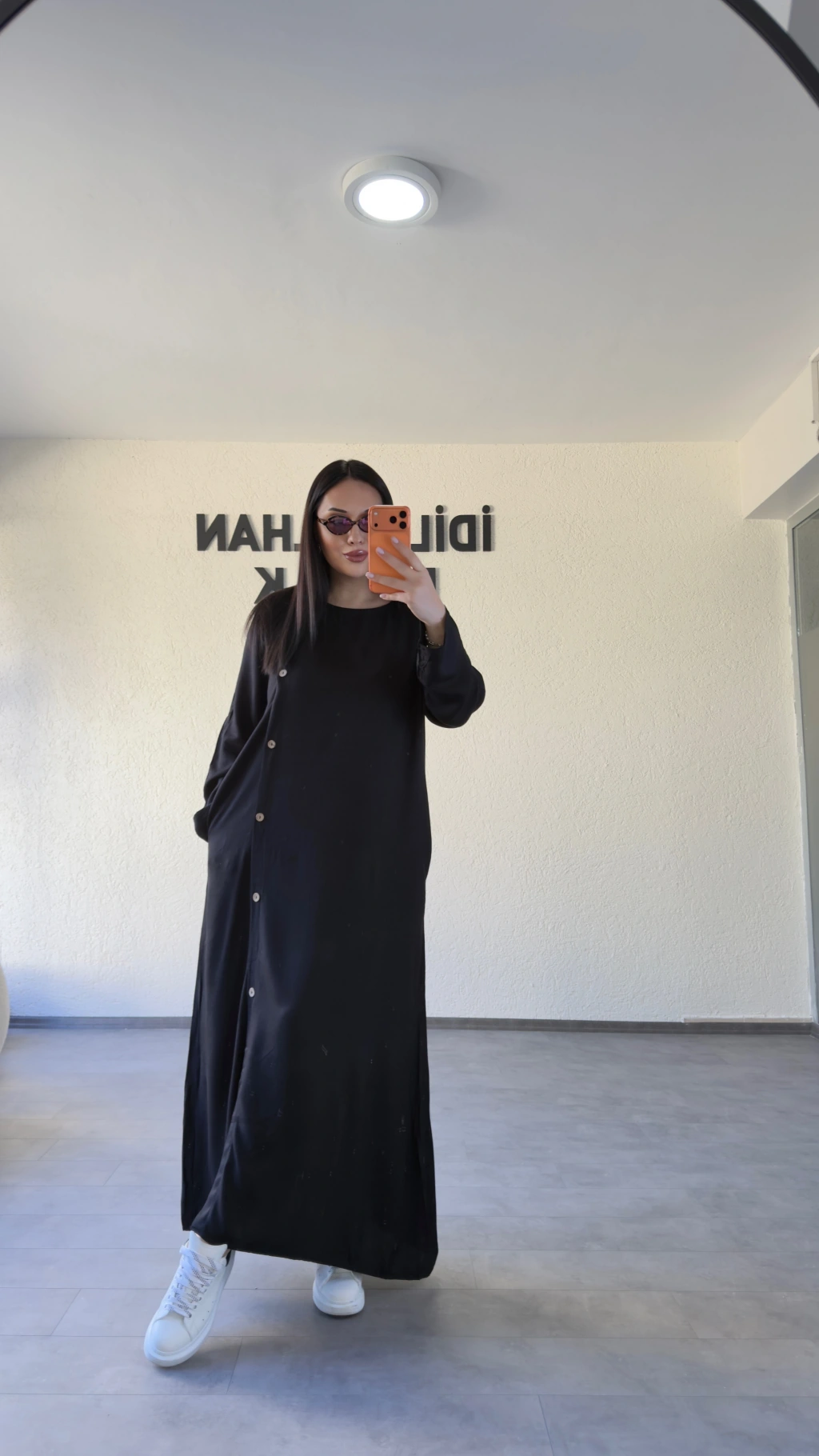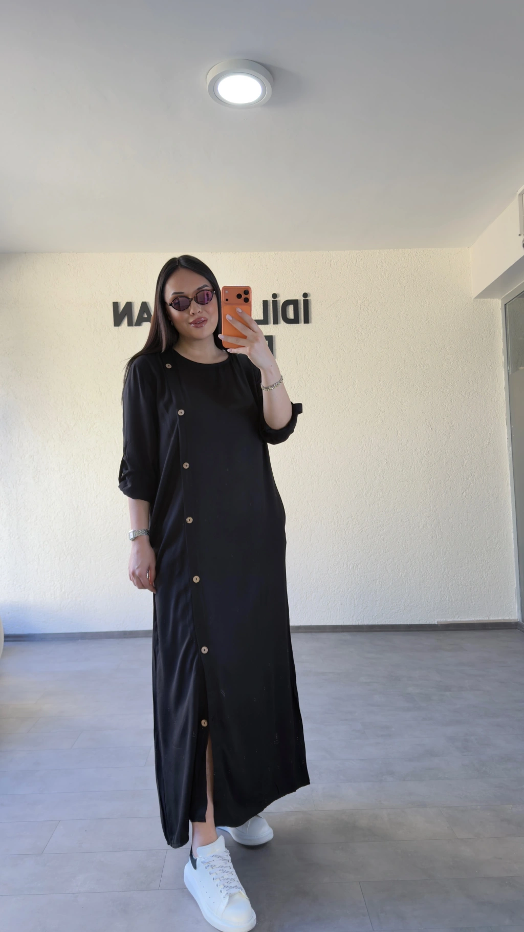 Siyah Salaş Kesim Düğmeli Elbise