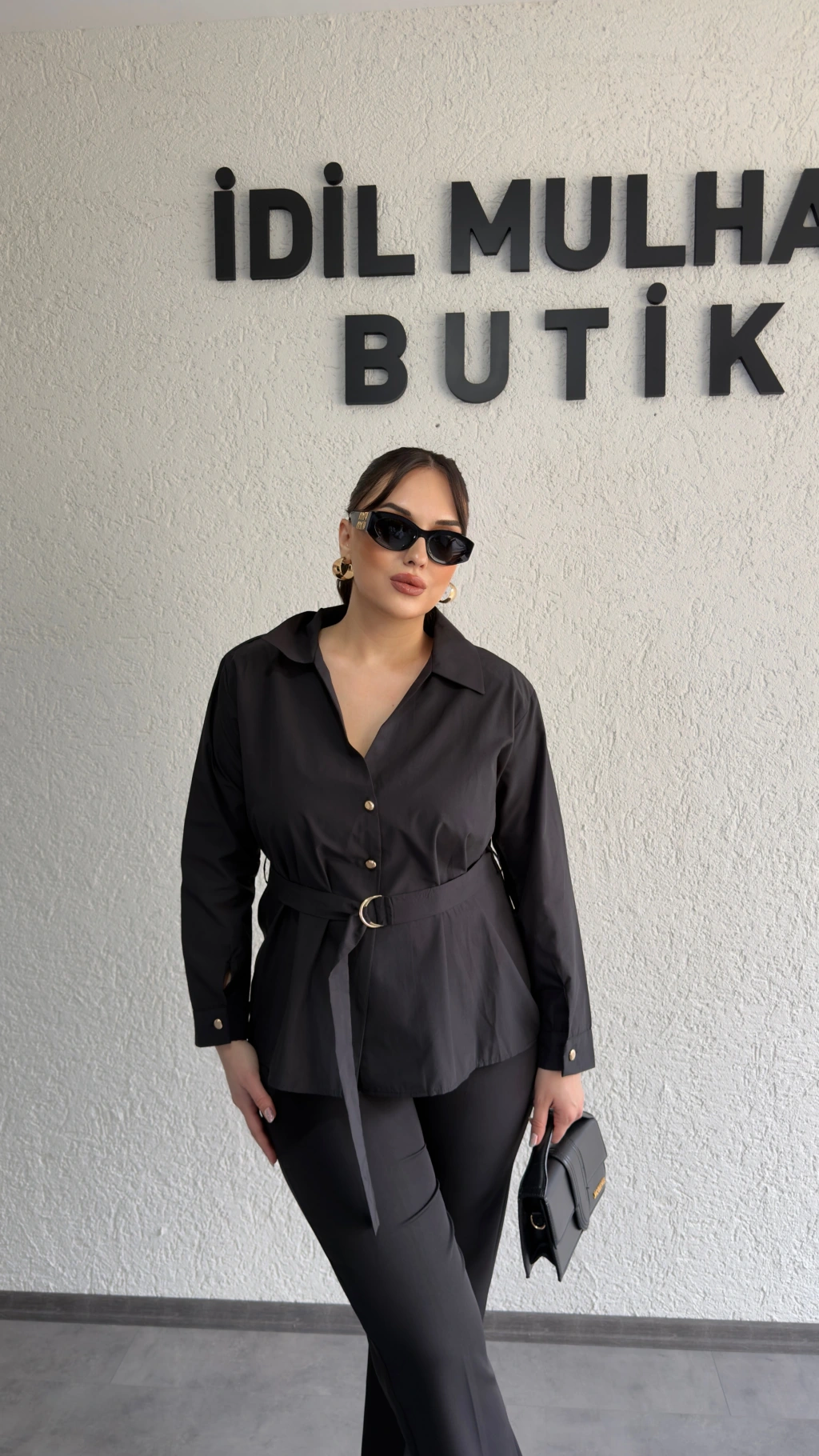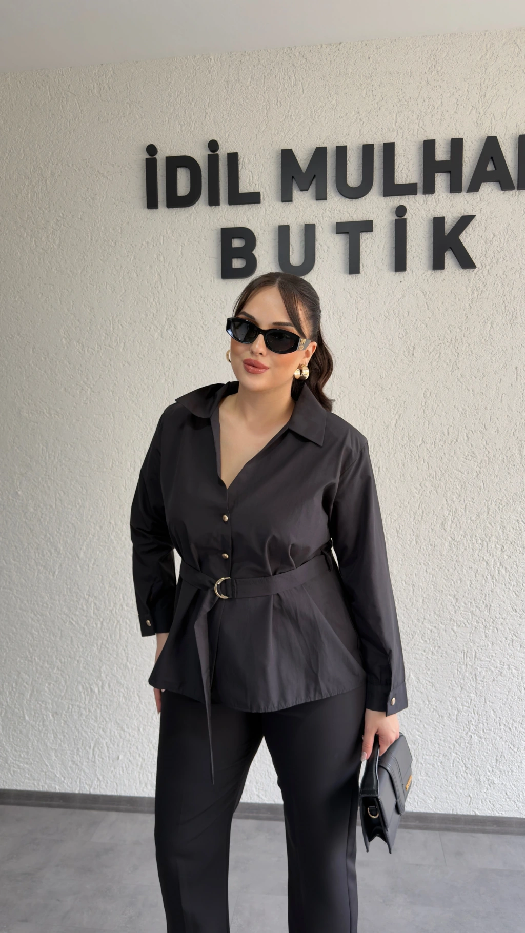 Beyaz Şık Kesim Kuşaklı Gömlek