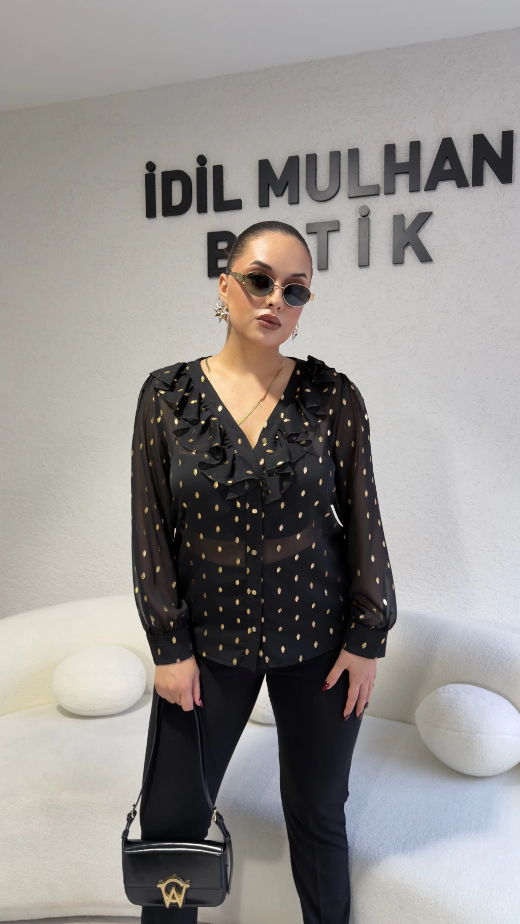 Siyah Şifon Yaka Ve Kol Detaylı Elbise