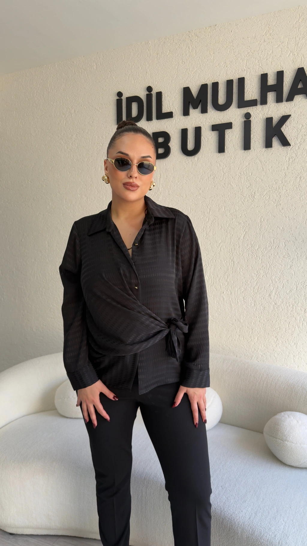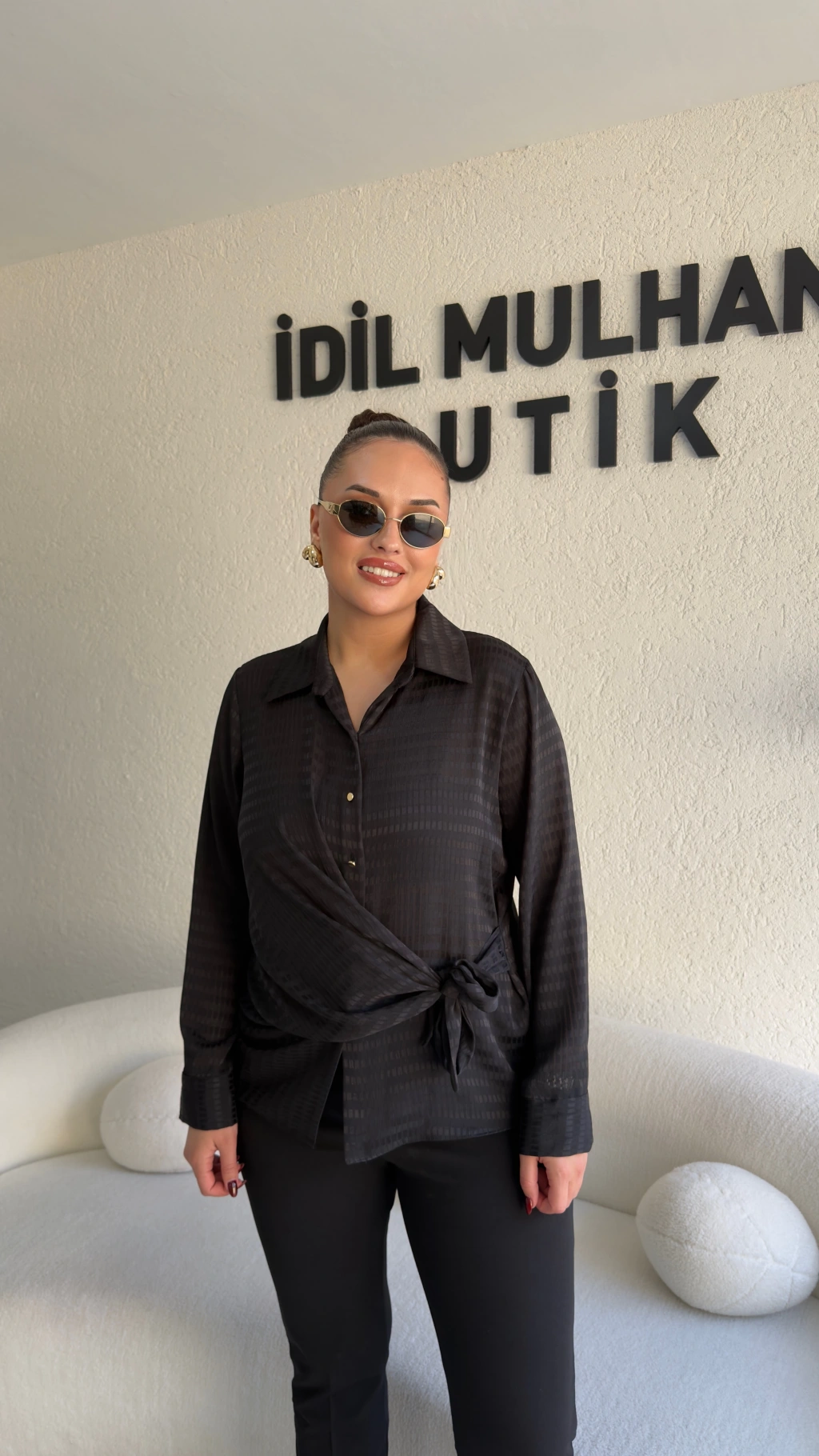 Siyah Bağlama Detaylı Batik Desenli Bluz