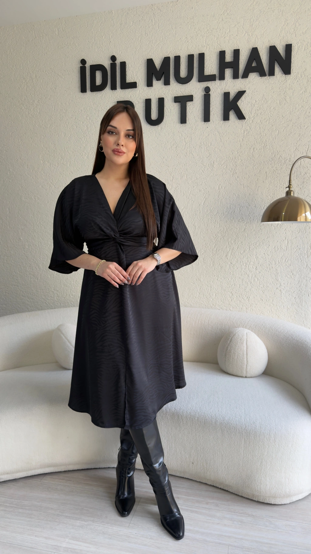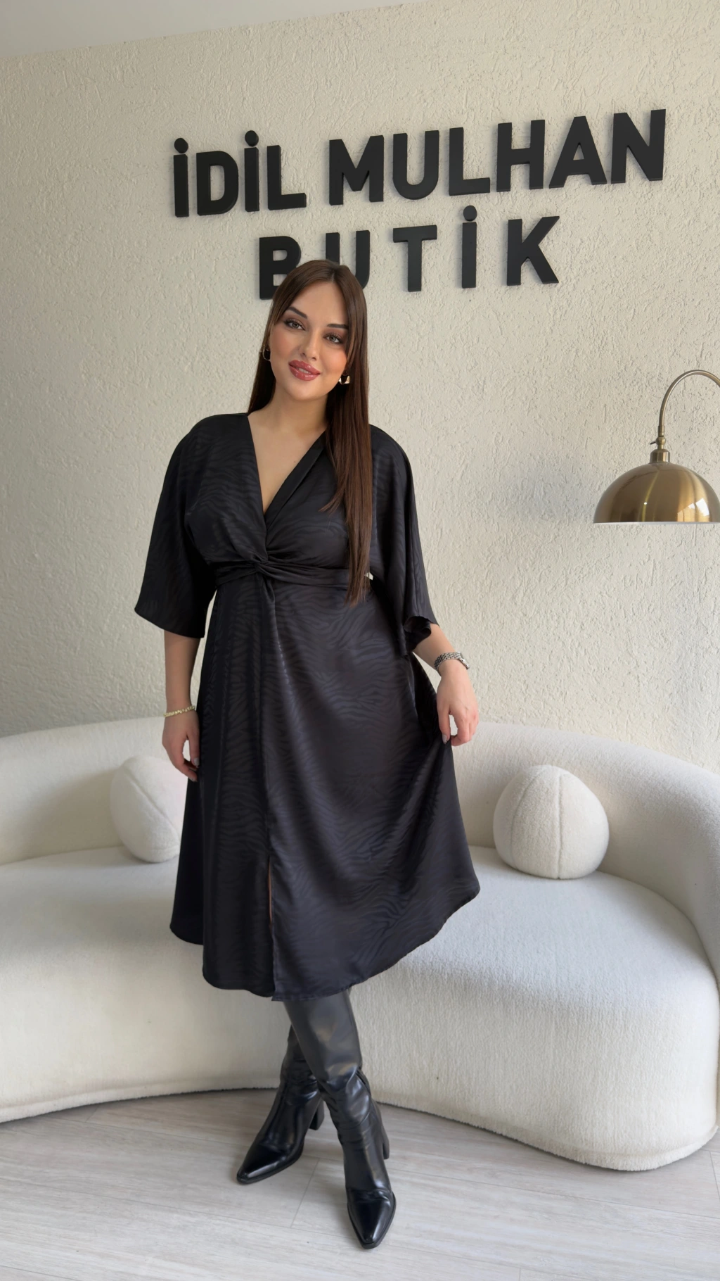 Fermuarlı Yaka Siyah Rahat Kesim Elbise