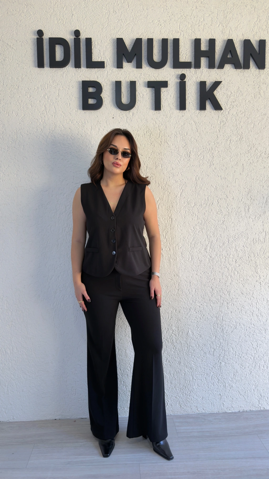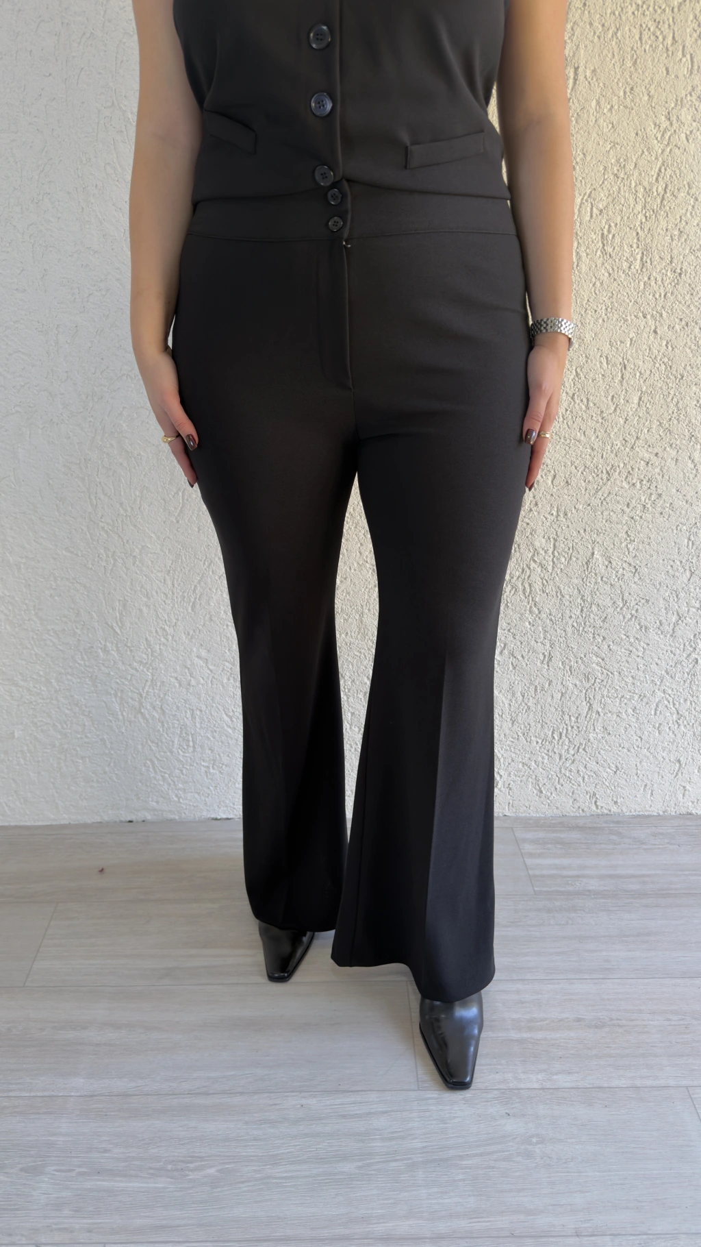 Siyah Yüksek Bel İspanyol Paça Pantolon