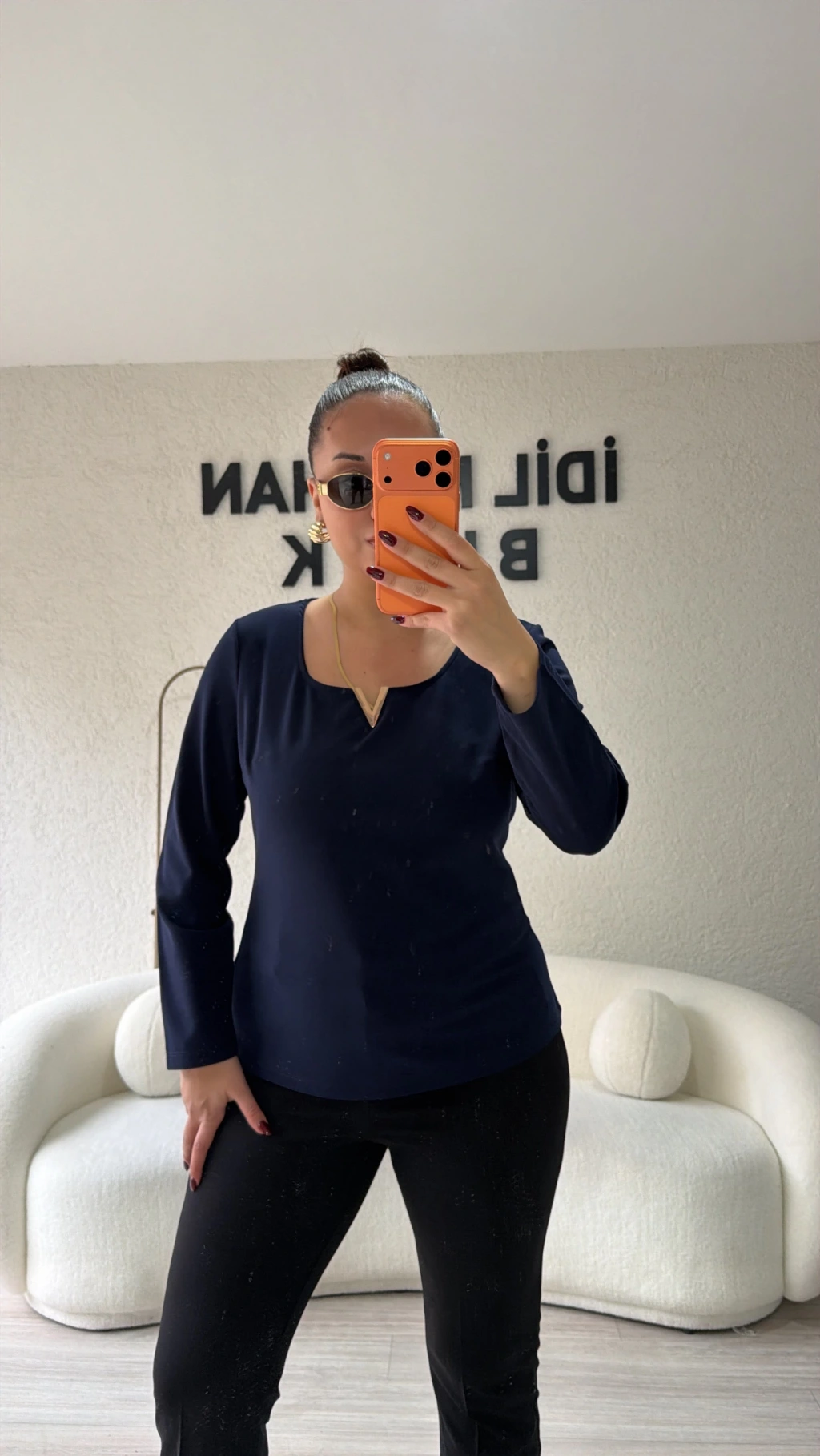 Lacivert Yakası Düğmeli Büyük Beden Takım