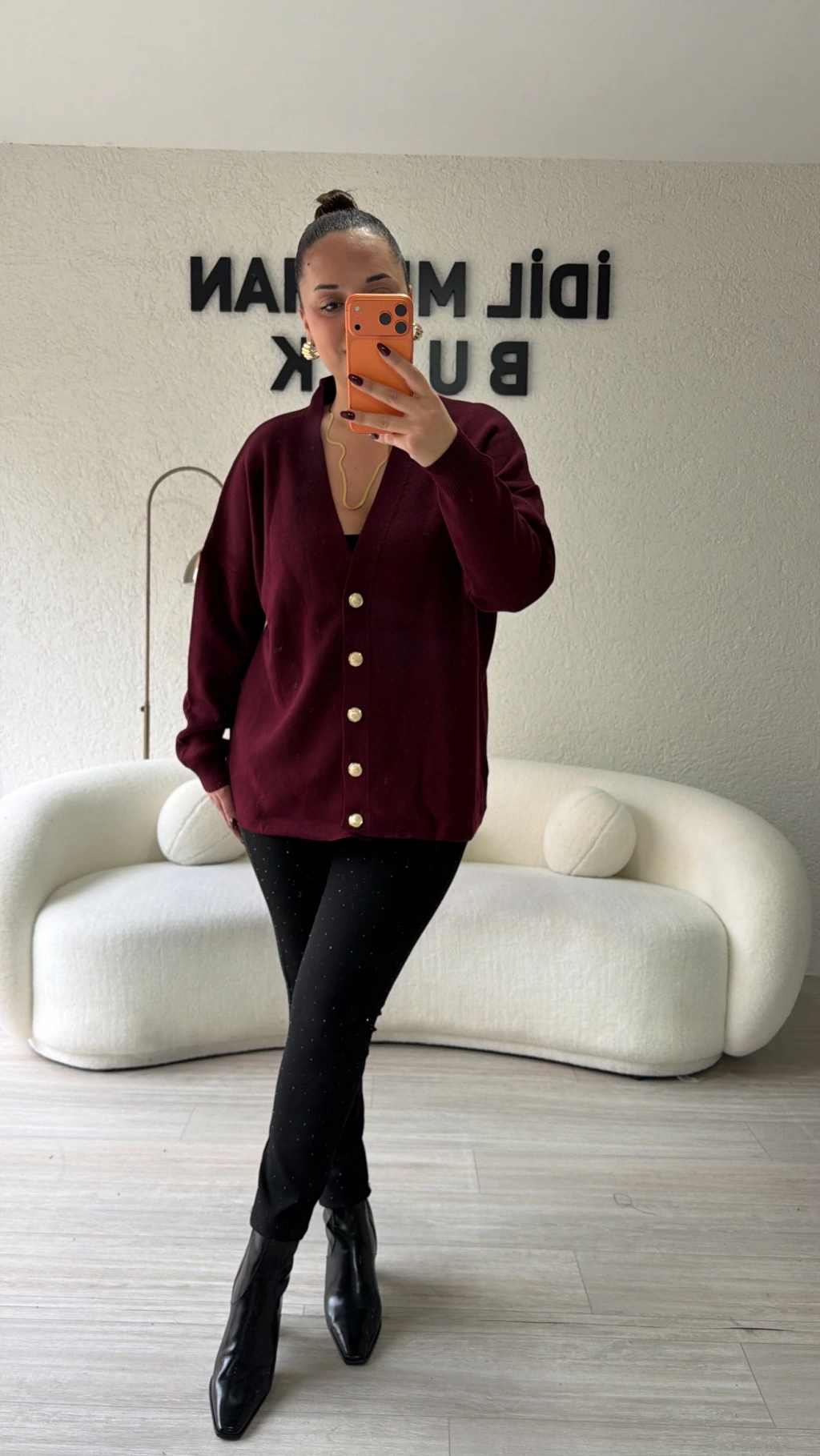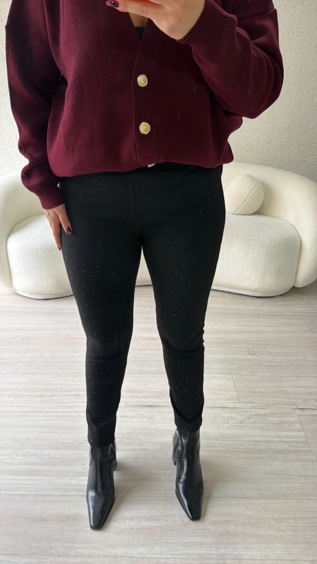 V Gold Detaylı Bordo Bluz